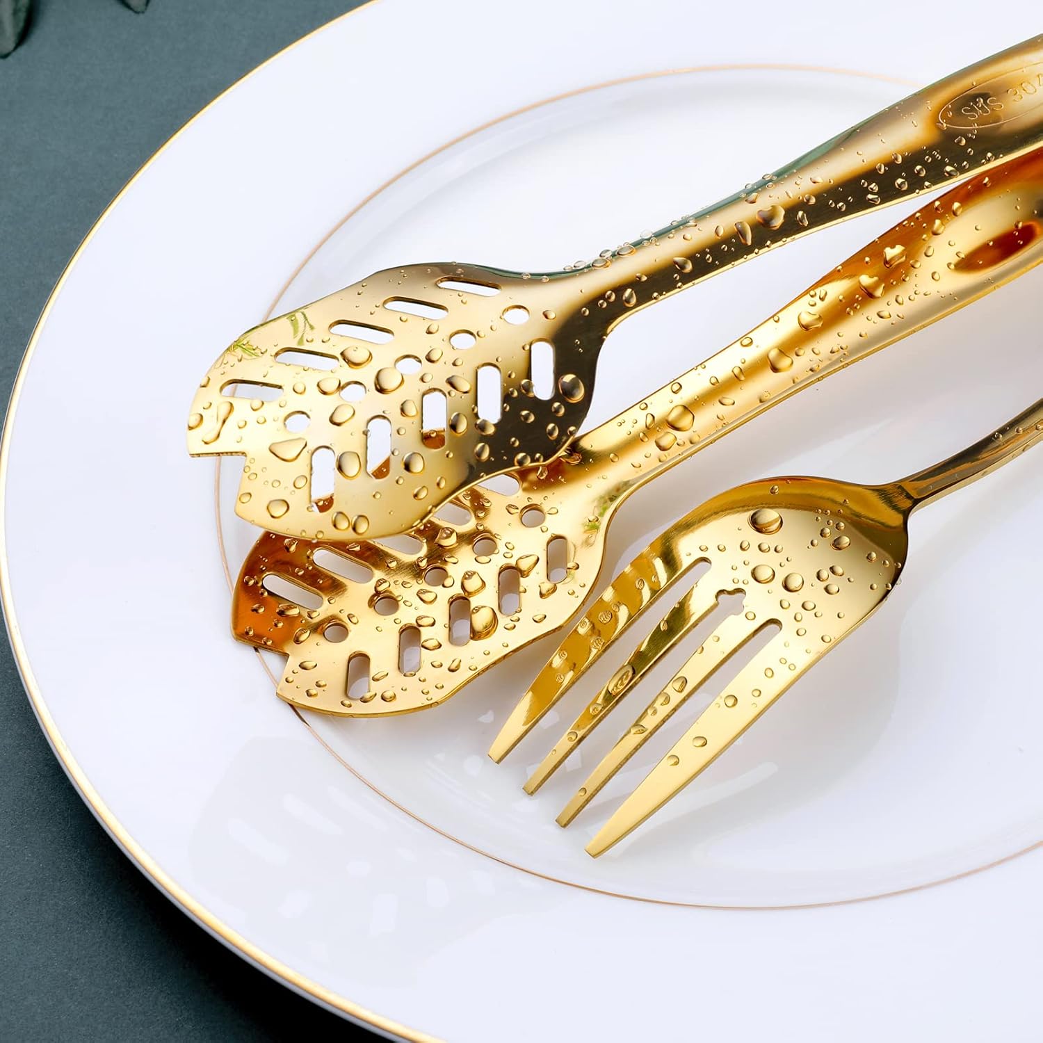 - ăELEGANT DESIGNăMirror polishing finish enhance the look and style of your meals with a modern and sophisticated look and feeling. Each meal will be effortless and pleasant with our gold serving utensils set.