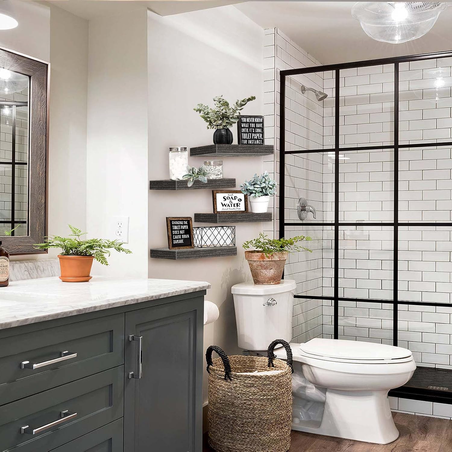 QEEIG Floating Shelves for Wall Bathroom Shelf Bedroom Kitchen Living Room Farmhouse Small Book Shelf 16 inch Set of 4, Grey (015-GY4)