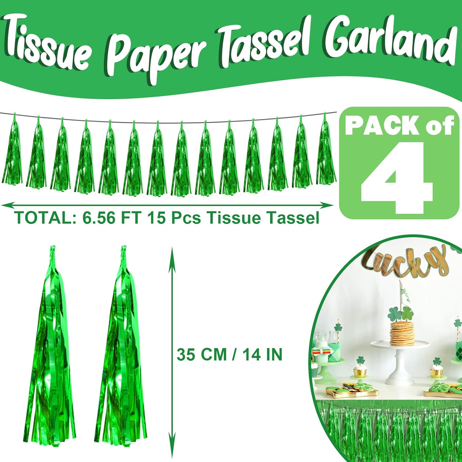 • 【Green Party Supplies Set】: The total length of the green birthday tassels banner is 26.2 feet, divided into 4 strips, each 6.5 feet long. Each banner contains 15 tassels, and each tassel measures 14 inches, for birthday decorations many occasions, and so on
