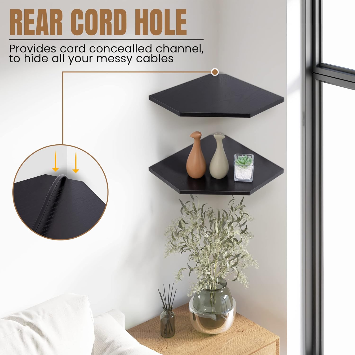 Corner Shelf Wall Mount, Floating Corner Shelves, Set of 2 Corner Wall Shelf Organizer, Rustic Wood Wall Storage Display Shelves for Living Room Bedroom Bathroom Kitchen, Classic Black