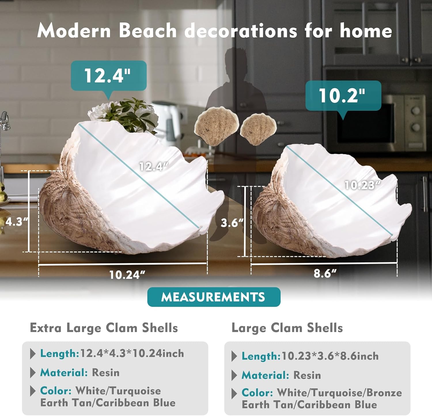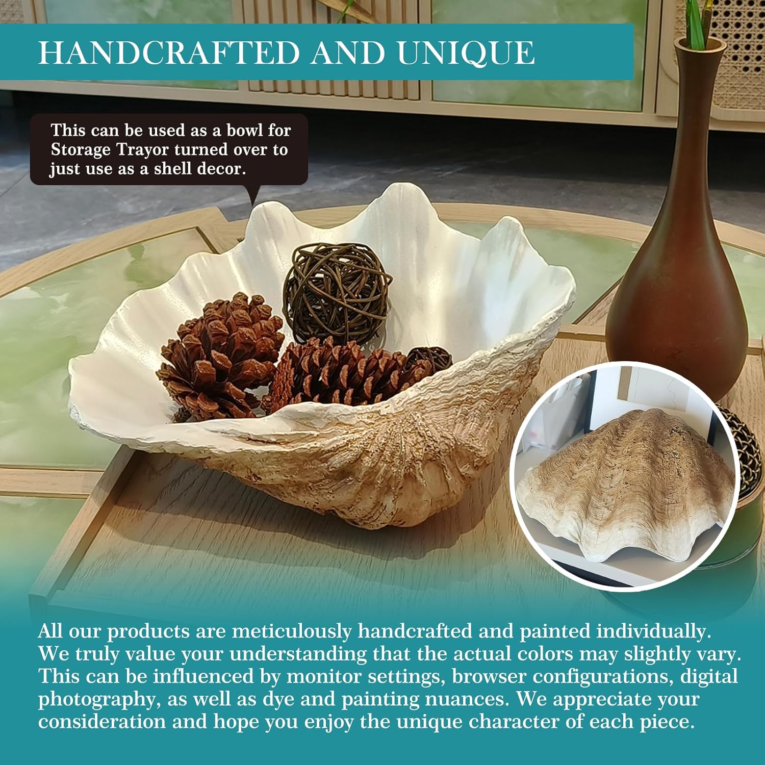 - 【Size】This Earth Tan/White Seashell decorative bowls made from 100% solid resin, -3.6" tall, 10.23" wide and 8.6" deep approximately. Clamshell decorative bowls Sufficient for home Bathroom Shelf,Room Console,Coffee table,Office Desk,Window Edges and a perfect idea for beach house decor,occasions for beach themed parties or weddings