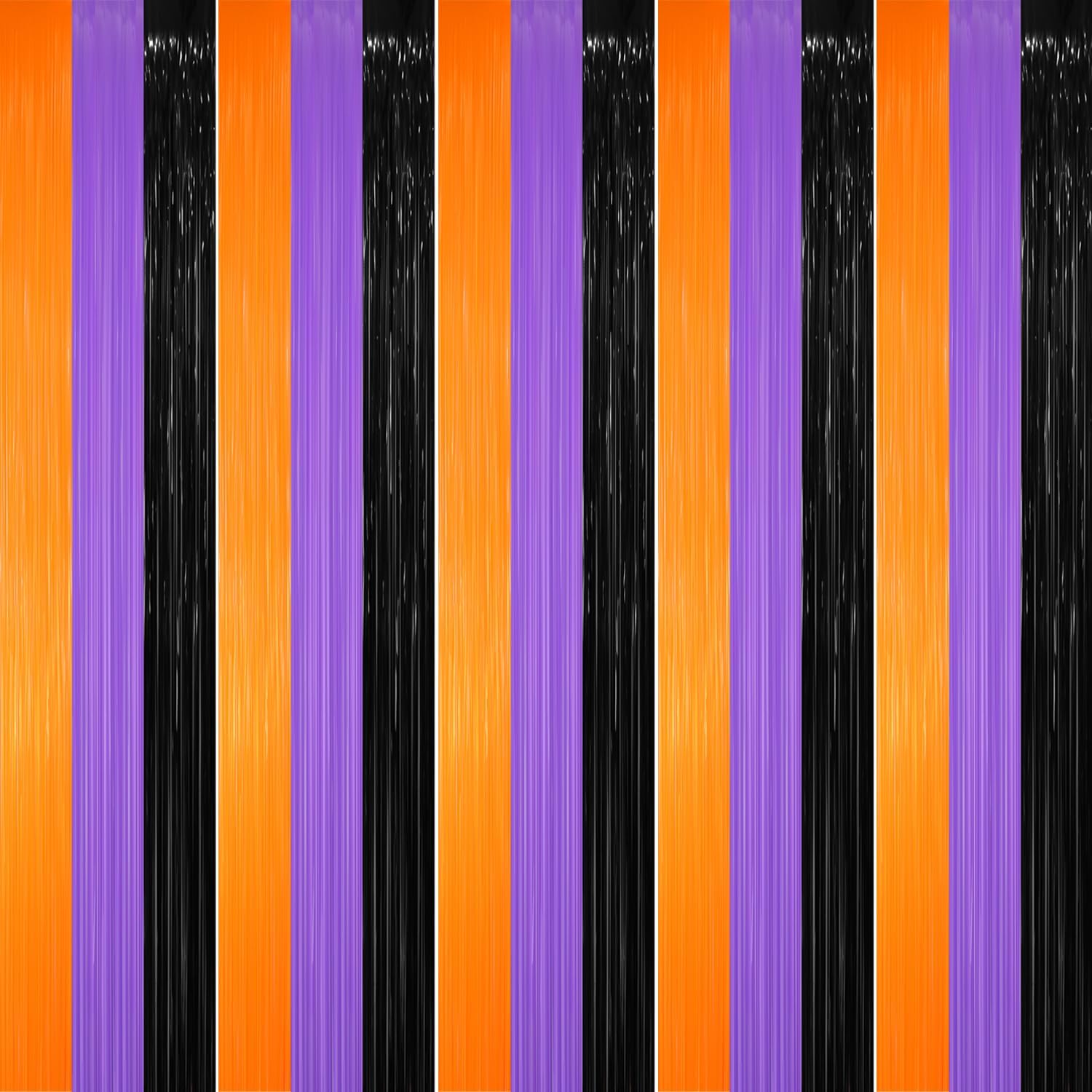 - Package Includes:5 Packs Black&Orange&Purple Foil Fringe party backdrop