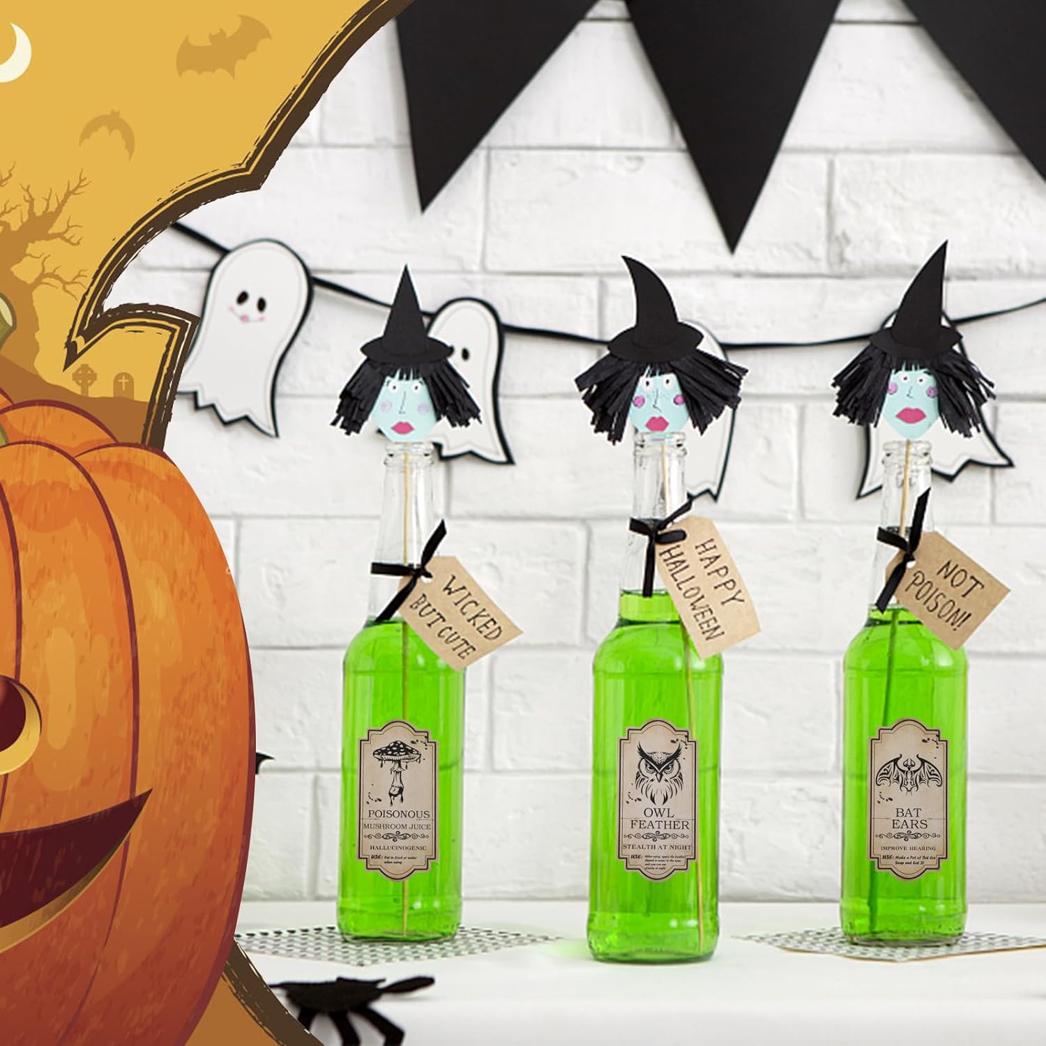 KIMOBER 144PCS Halloween Bottle Labels, Assoeted Vintage Laminated Animal Apothecary Potion Bottles Stickers for Halloween Party Supplies Photo Props