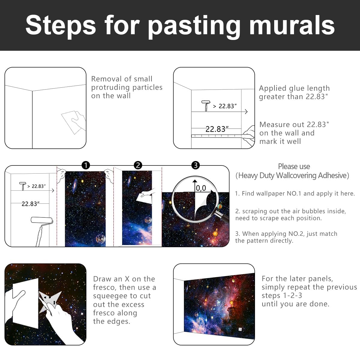 - 💕wallpaper size : 183"x120" divided into 22.83"x108"x7 sections