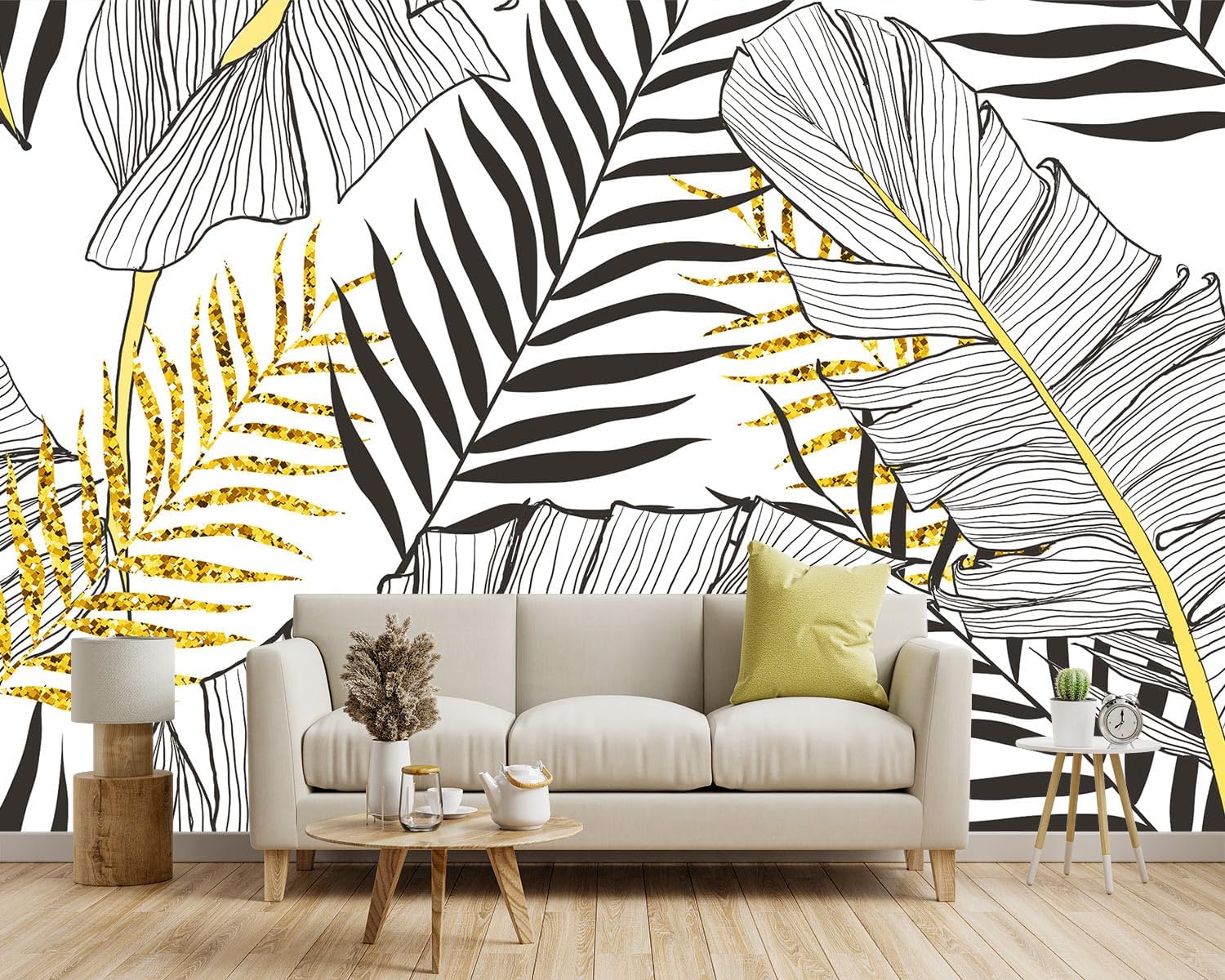 -Black and Gold Tropical Botanical Banana Leaf Fabric Wallpaper Living Room Bedroom Bathroom Abstract Plant Large Wall Mural- 160"x108"( not Peel and Stick)