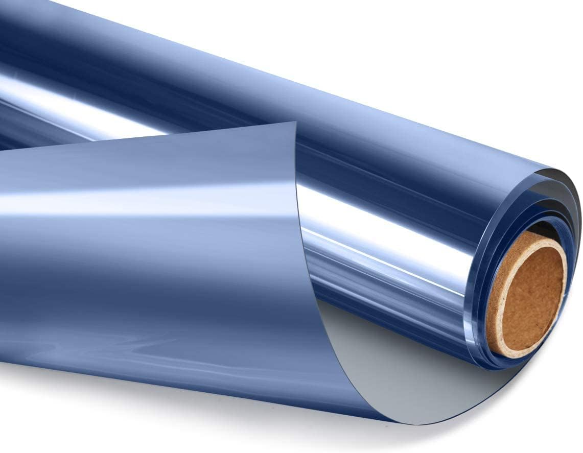 HIDBEA One Way Privacy Window Film, Daytime Mirror Reflective Heat Control UV Sun Blocking Non-Adhesive Static Cling Window Tint for Home and Office (Blue-Silver, 29.5 Inch x 6.5 Feet)