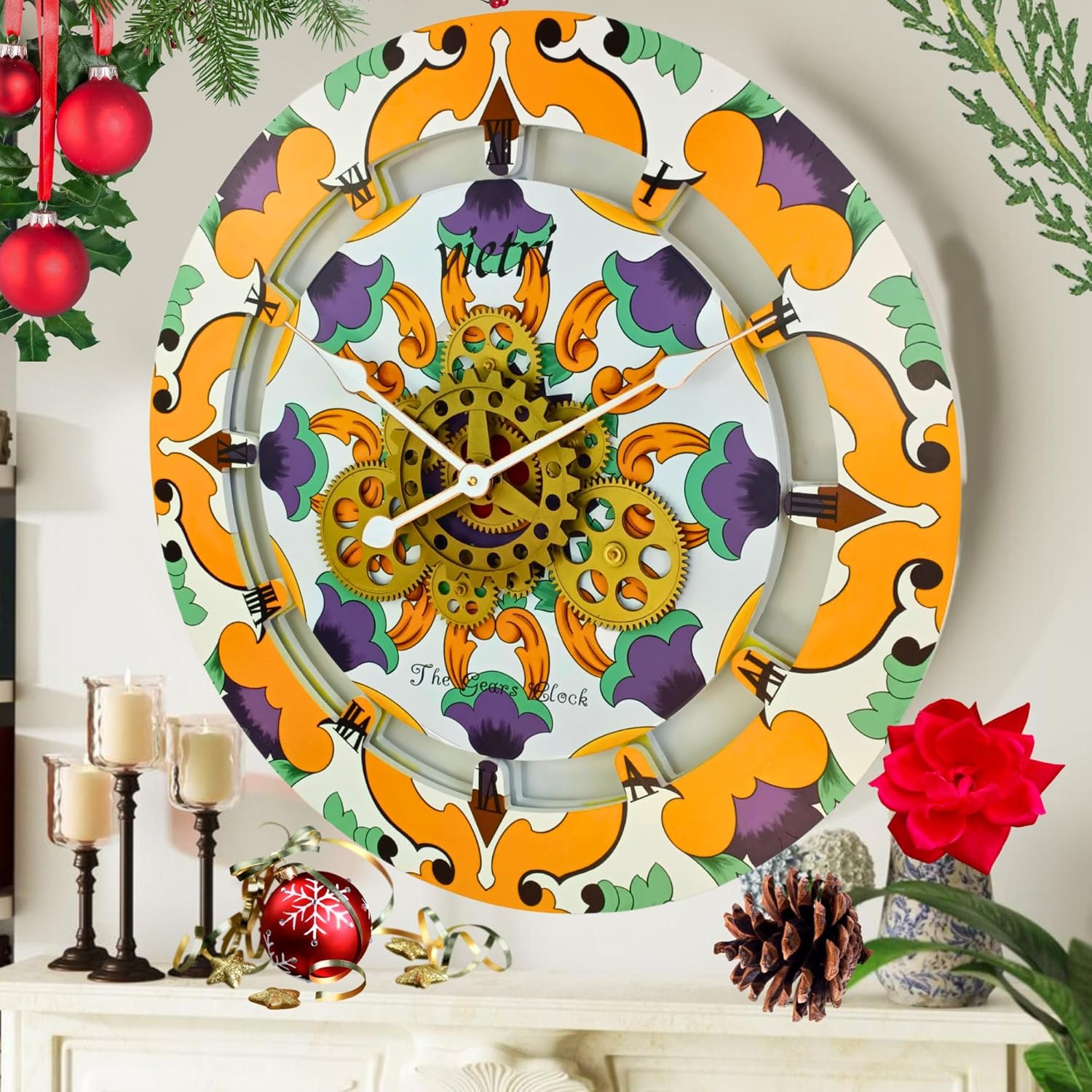 The Gears Clock Wall Clock Italy Collection with Moving Gears (Vietri, 24 inch Round)