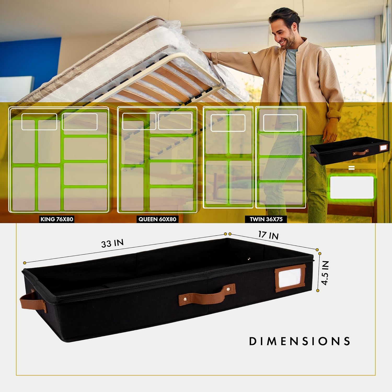 - šš©ššš šššÆšš« šš«š šš§š¢š³šš«: Prioritizing superior under bed storage for clothes not only helps you declutter, but also utilize hidden spaces like under the bed and under the couch. Our stylish storage for under beds is also ideal as a shoe storage organizer, low profile under crib storage, blanket storage, under bed ornament storage box, low profile storage box, and storage for other items such as yarns, sweaters, holiday decorations, prized collections, & more!