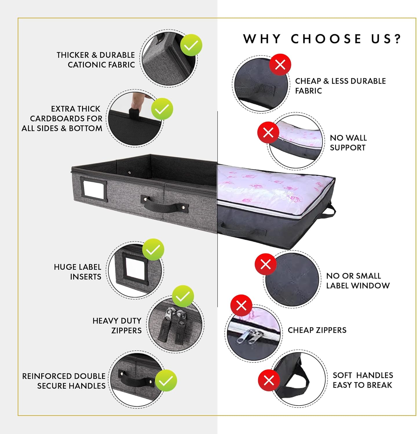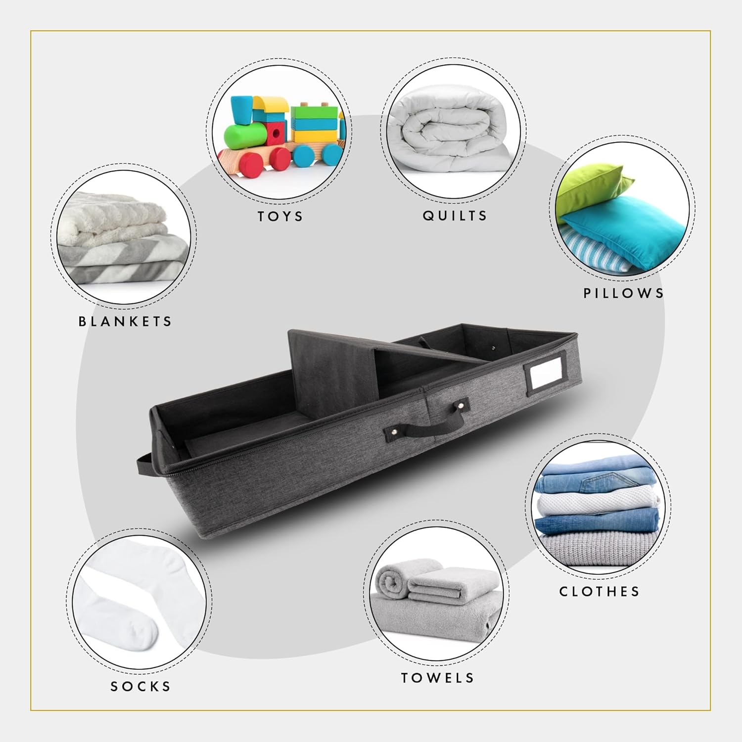 - šš©ššš šššÆšš« šš«š šš§š¢š³šš«: Prioritizing superior under bed storage for clothes not only helps you declutter, but also utilize hidden spaces like under the bed and under the couch. Our stylish storage for under beds is also ideal as a shoe storage organizer, low profile under crib storage, blanket storage, under bed ornament storage box, low profile storage box, and storage for other items such as yarns, sweaters, holiday decorations, prized collections, & more!