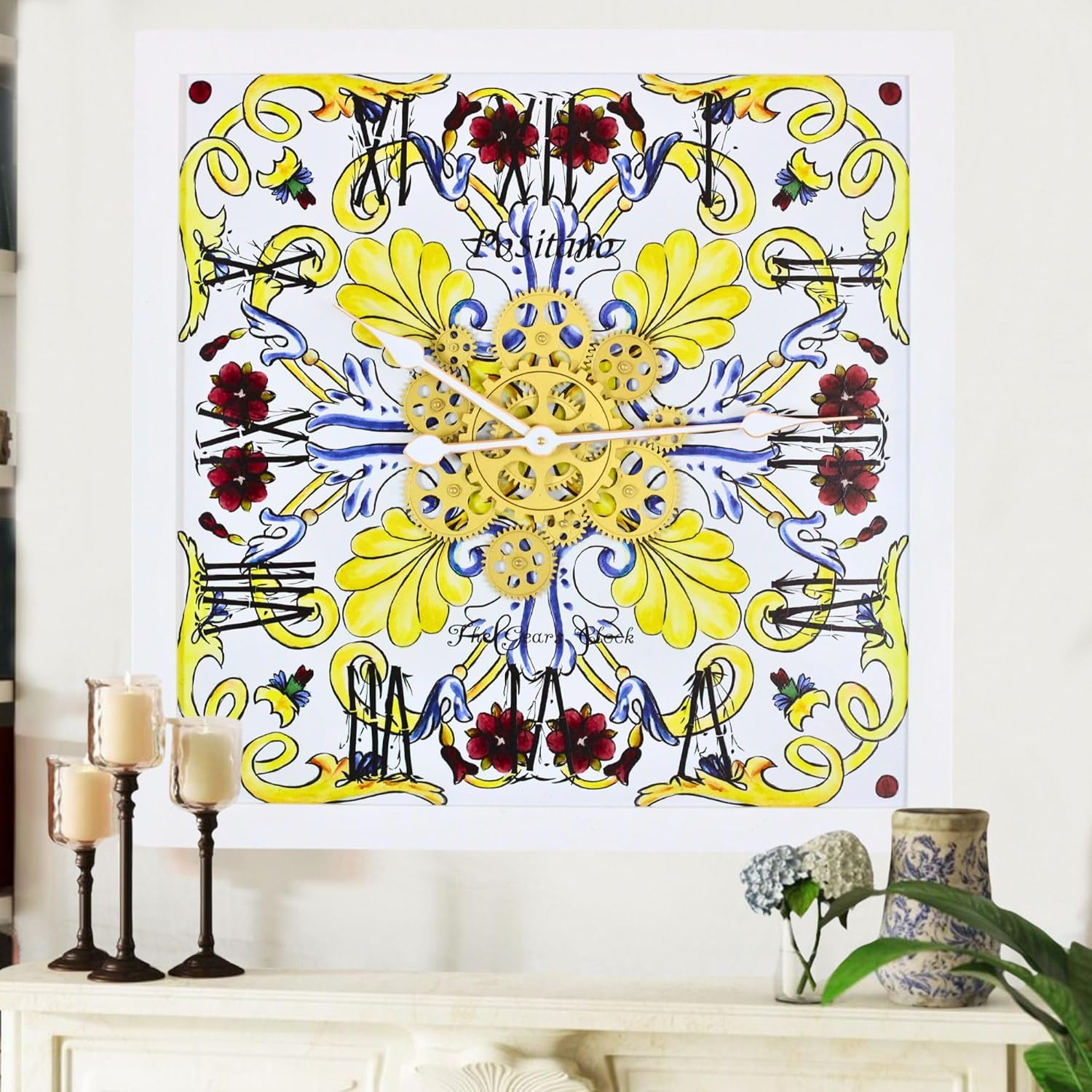 - Wall Clock Italy Collection with Real Moving Gears is an Art Timepiece inspired by the Famous Amalfi coast Tiles in Italy