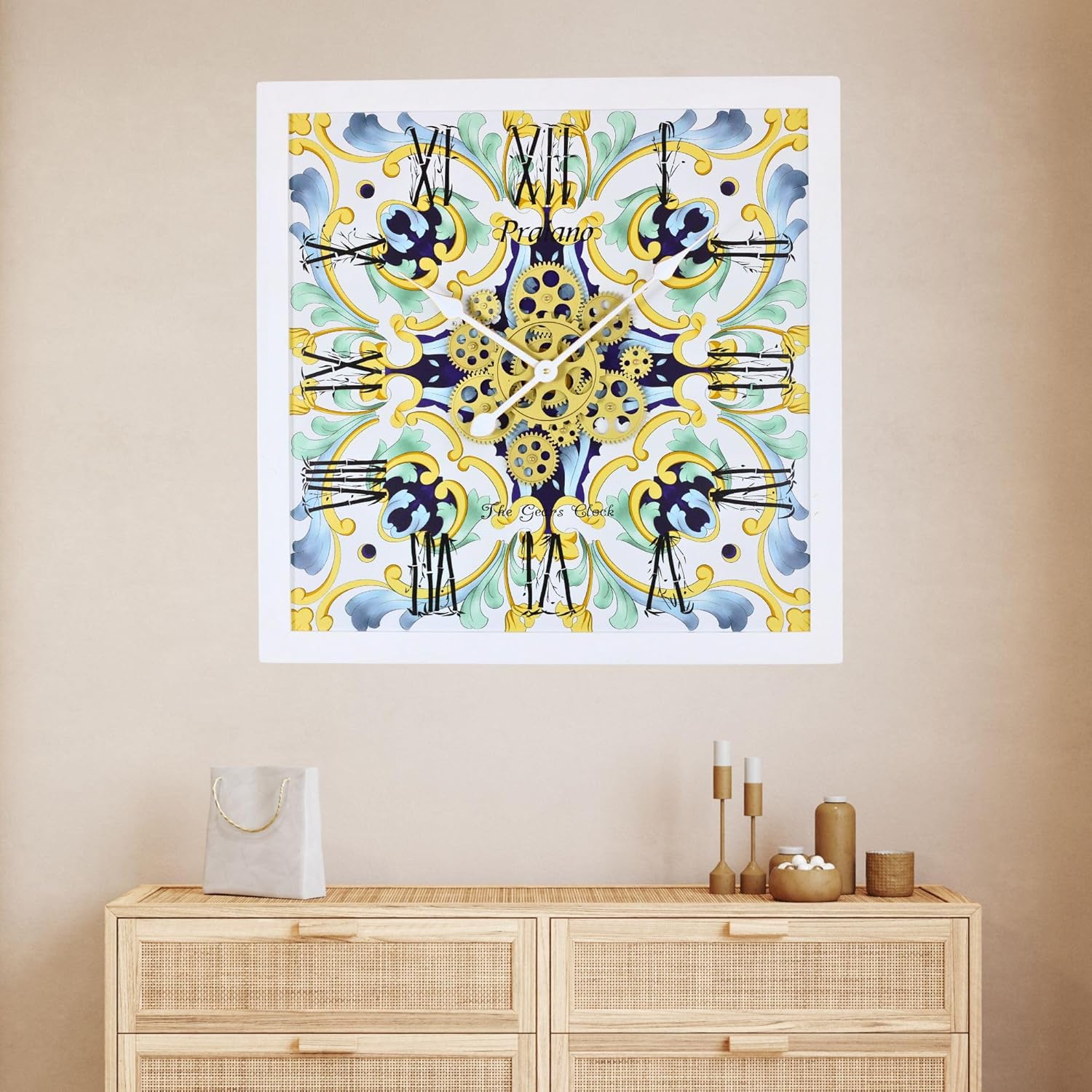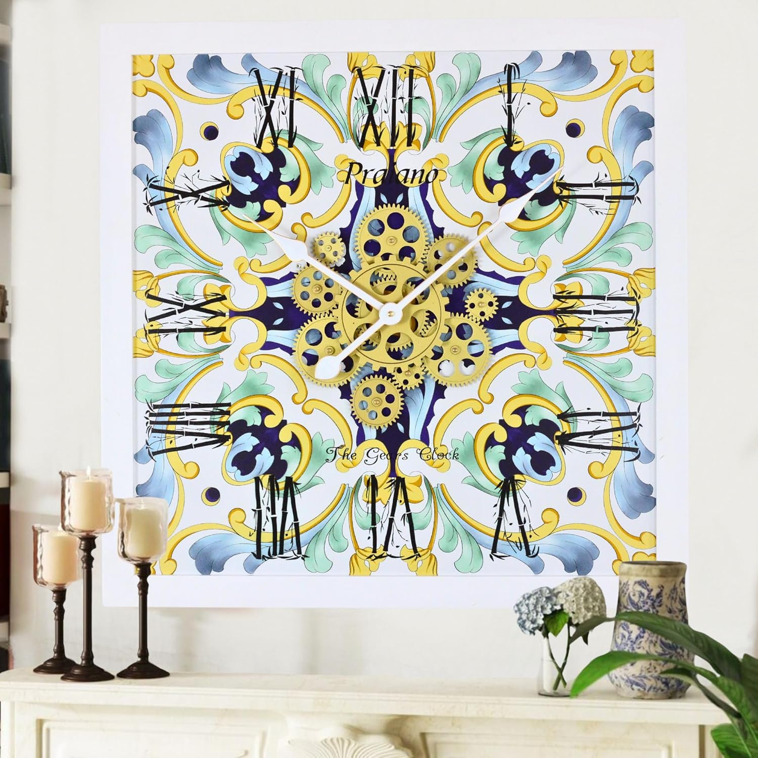 - Wall Clock Italy Collection with Real Moving Gears is an Art Timepiece inspired by the Famous Amalfi coast Tiles in Italy