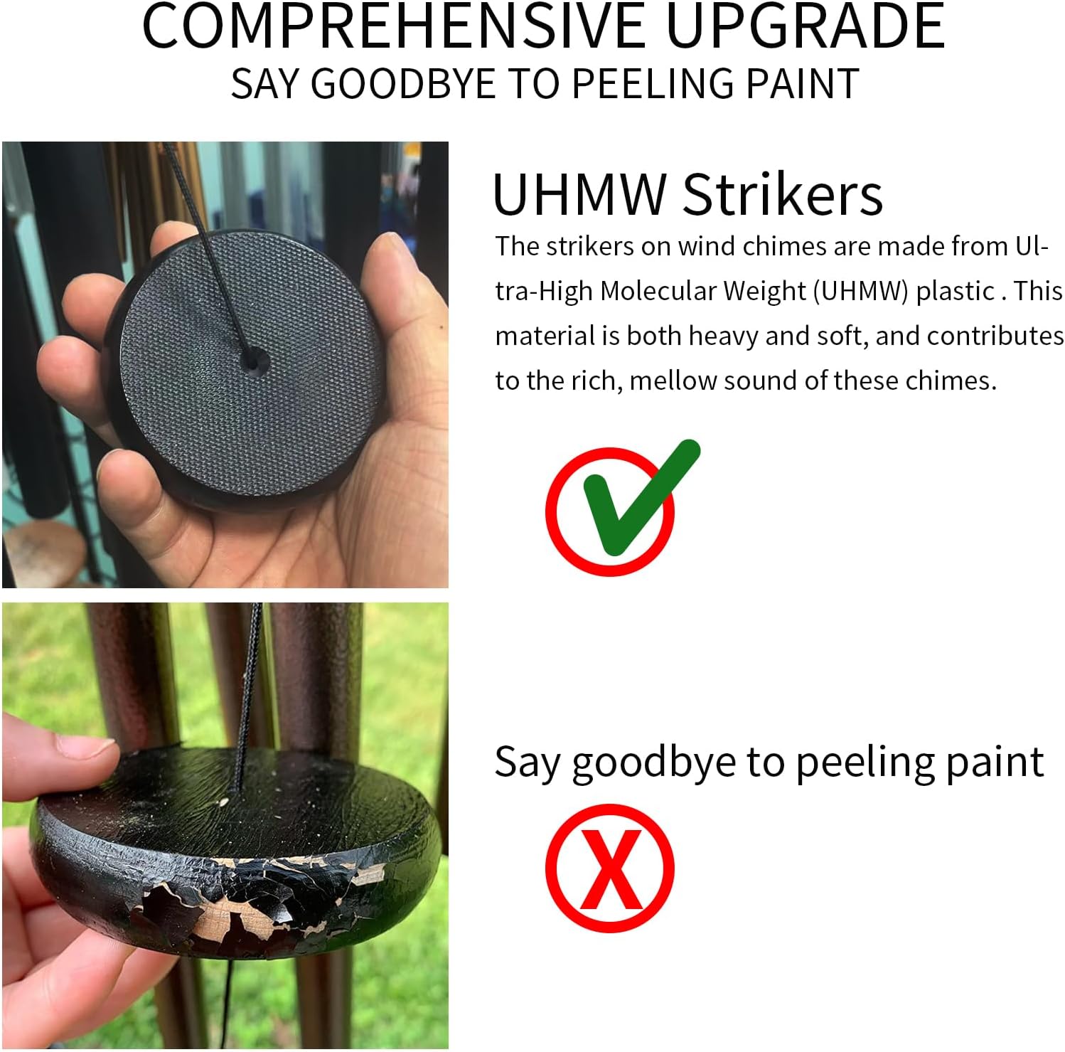- Superior Musical Performance: Our 45" wind chimes feature 6 hand-tuned aluminum tubes that produce a deep, rich tone. The heavy-duty nylon cording and high-density striker ensure clear tones and resonances.