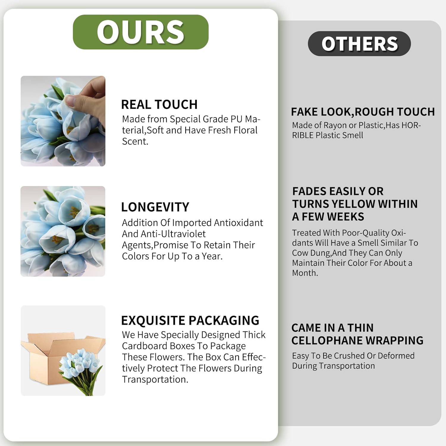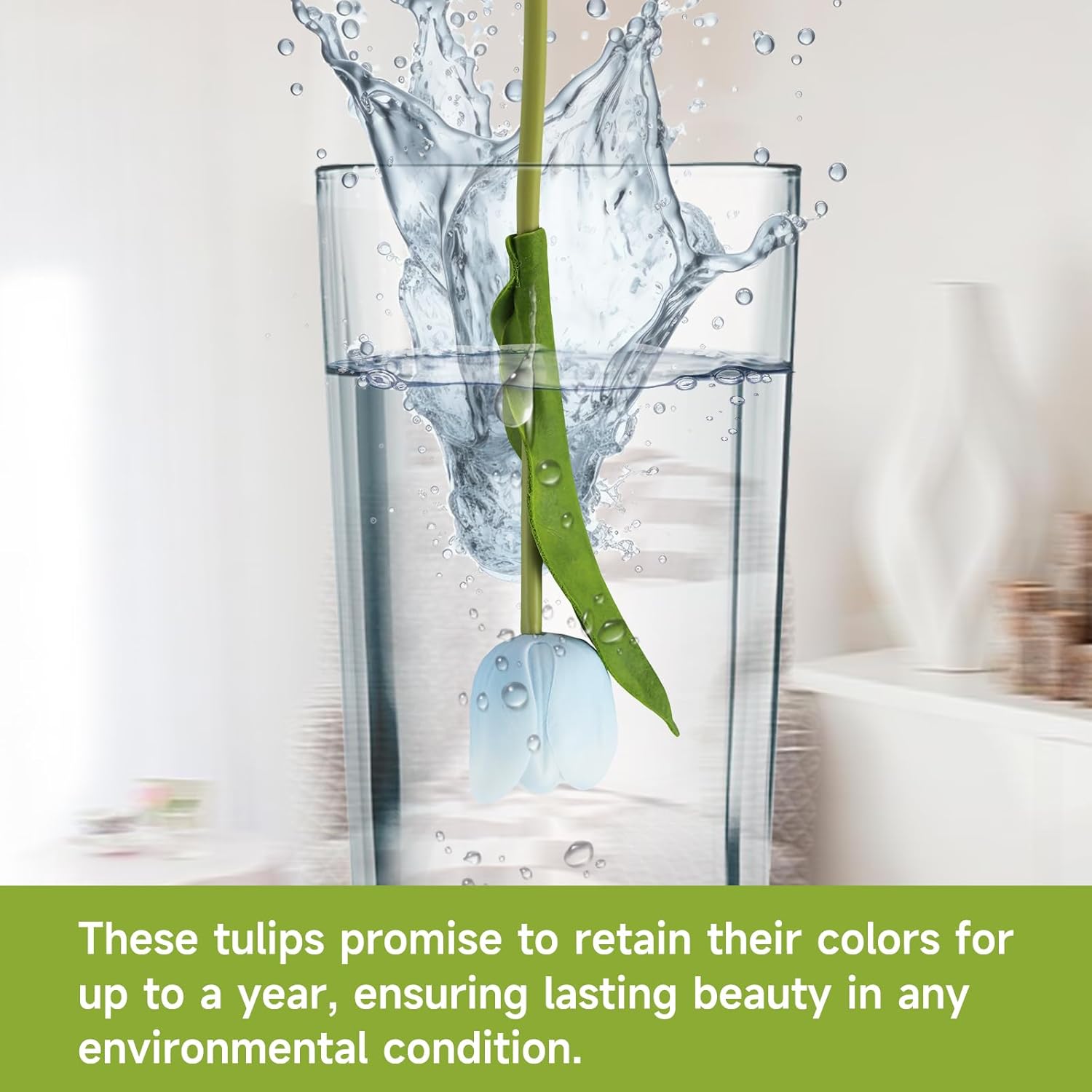 Buart Artificial Tulip in Bulk for Wedding Bridal Bouquet,Fake Flowers for Valentine's Day Mother's Day Easter Table Centerpieces Decorations(Light Blue,Real-Touch,12pcs)