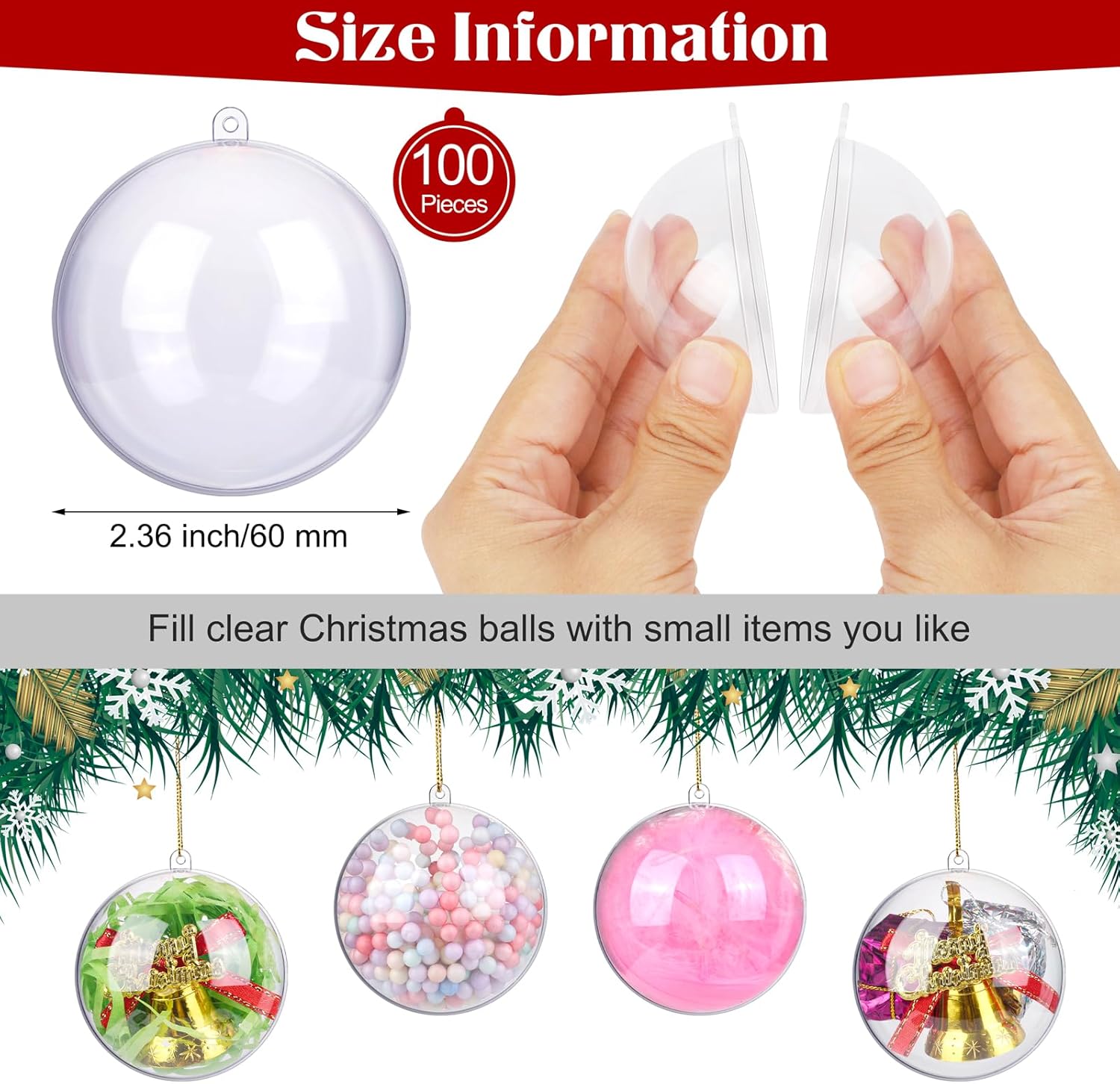 - Abundant quantity: you will receive 100 pieces of Christmas clear plastic fillable ball ornaments with a generous quantity, our packaging includes a sturdy paper box to allow these DIY transparent balls to be protected during delivery and be provided convenient storage