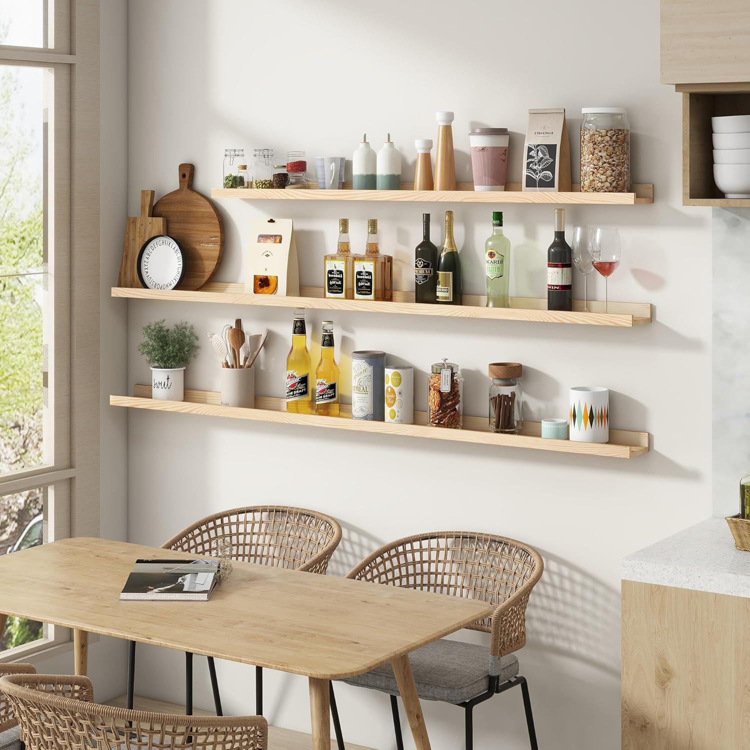 Picture Ledge Shelf for Wall, 24 inch Solid Pine Wood Nursery Book Shelves 2 Packs, Floating Ledge Shelves for Kids' Room Bedroom Bathroom Living Room Photo Frames Office Nursey Wall Decor, Natural