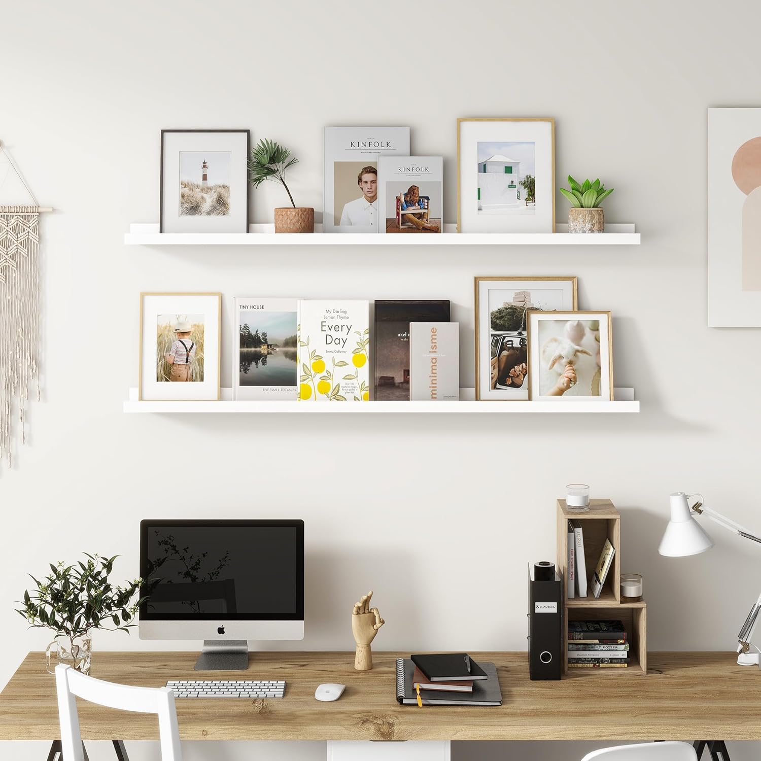 Picture Ledge Shelf for Wall, 16 inch Solid Pine Wood Nursery Book Shelves 2 Packs, Floating Ledge Shelves for Kids' Room Bedroom Bathroom Living Room Photo Frames Office Nursey Wall Decor, White
