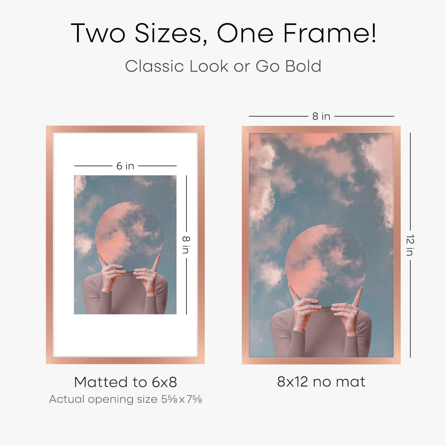 - MATTED OR EDGE-TO-EDGE—YOUR CALL. A crisp 6x8 white mat creates negative space, elevating your image with gallery precision. Or remove it for 8x12 bold, uninterrupted impact.