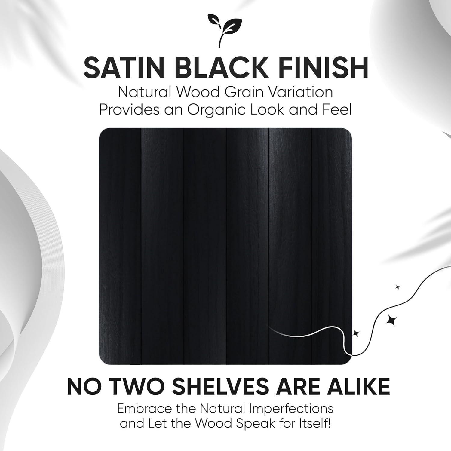 Homeforia 16 inch Black Floating Shelves, High End Solid Real Wood 16inch Bathroom Floating Shelves for Wall Mounted, 16in Wooden Small Floating Shelf, Heavy Duty Bracket, 16 X 6.5 X 1.75 in, Set of 2