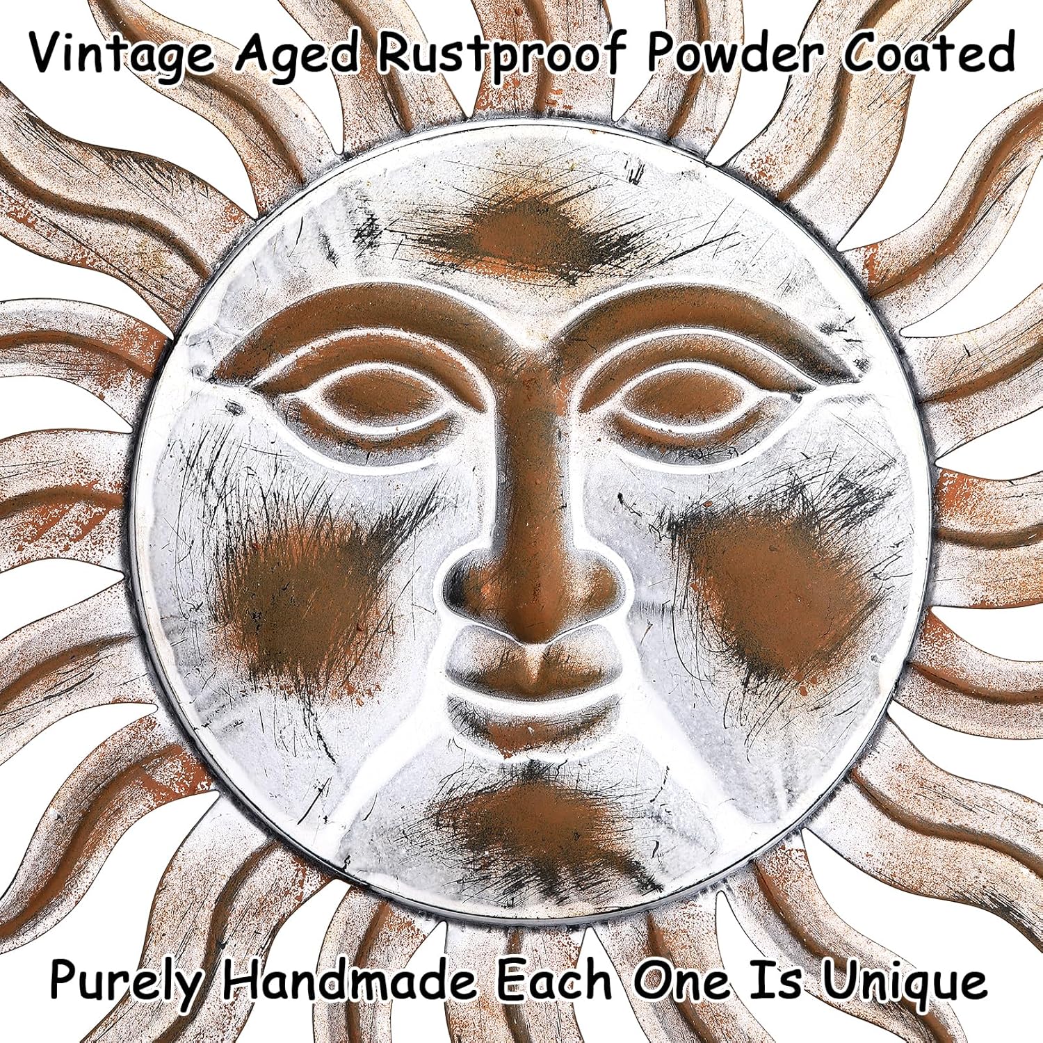 - Sturdy & Durable - Metal sun wall art decor is made of high quality metal with multiple layers of anti-brown powder coated finish, weatherproof, won't fade or rust even in the sun or rain, stand the test of time. The sun wall sculpture is 23.8" W and weighs 2.13 lbs.