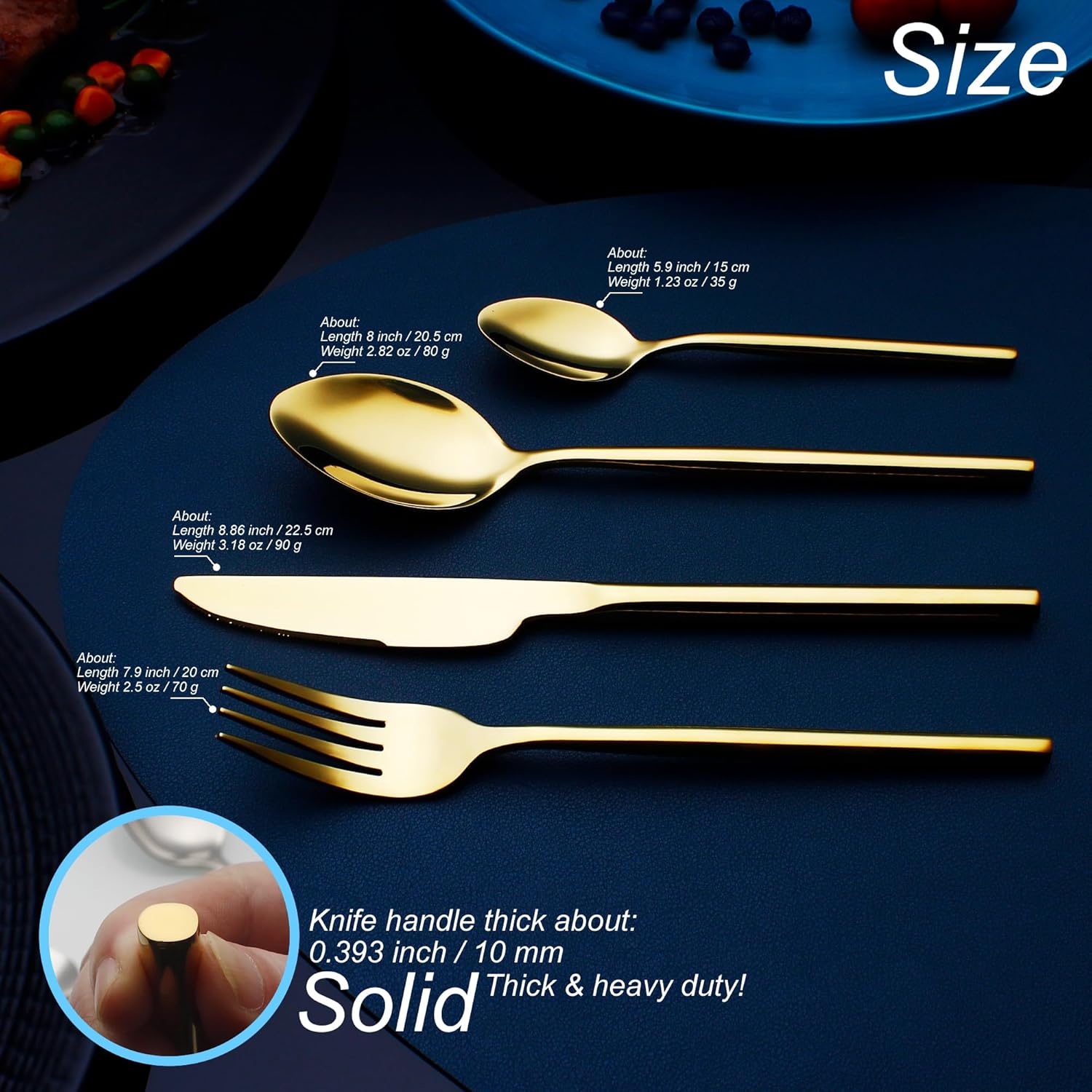 24 Piece Silverware Set For 6 Gold Heavy duty 18/10 Stainless Steel Flatware Set Modern Design Knife/Fork/Spoon Mirror Polished Dishwasher Safe Cutlery Set with Gifts