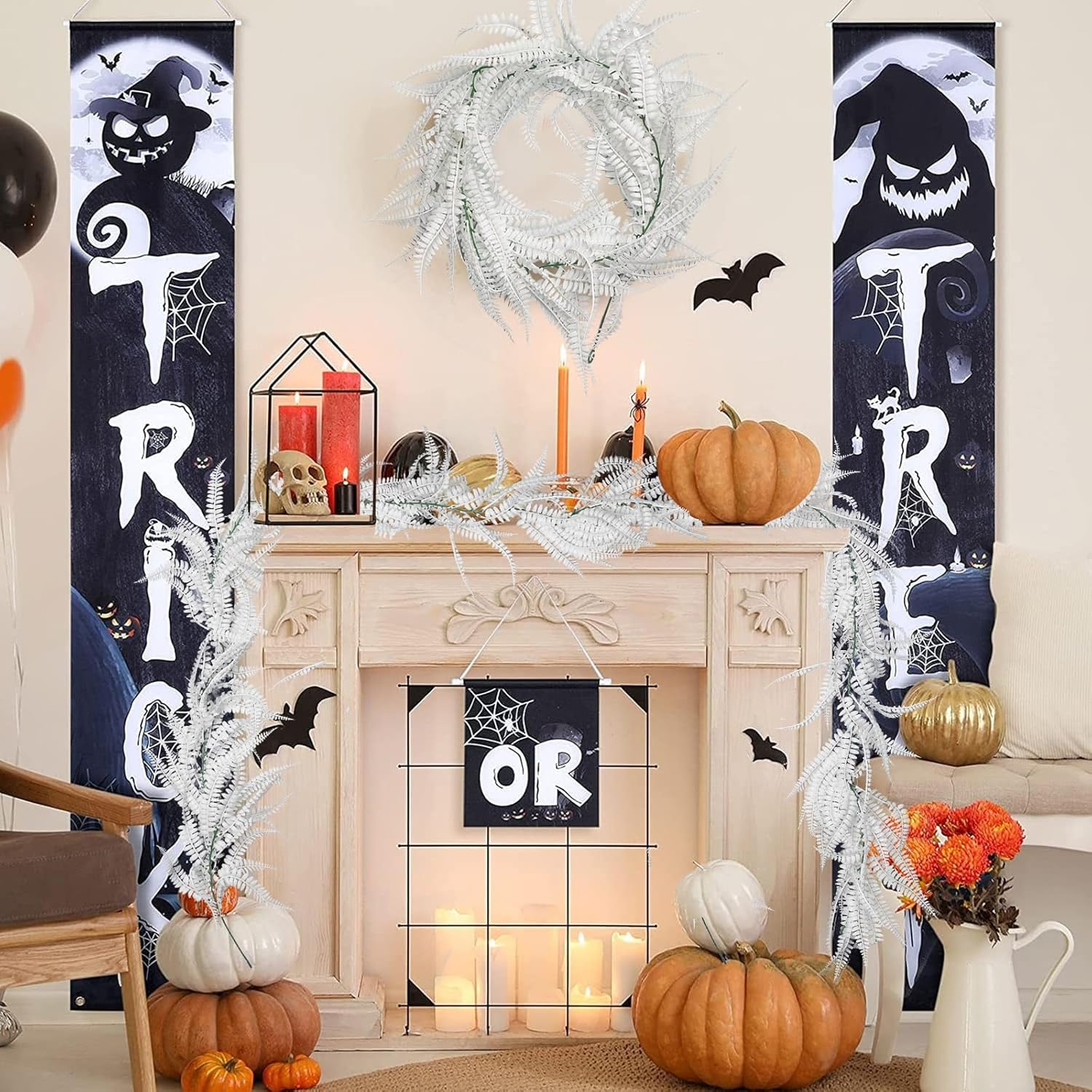 RECUTMS 2pcs Artificial Garland Faux Hanging Boston 6FT Fern Garlands Fake Greenery Ferns Plants for Halloween Thanksgiving Wedding Indoor Outdoor Party Wall Door Frame Fireplace Decor(White)