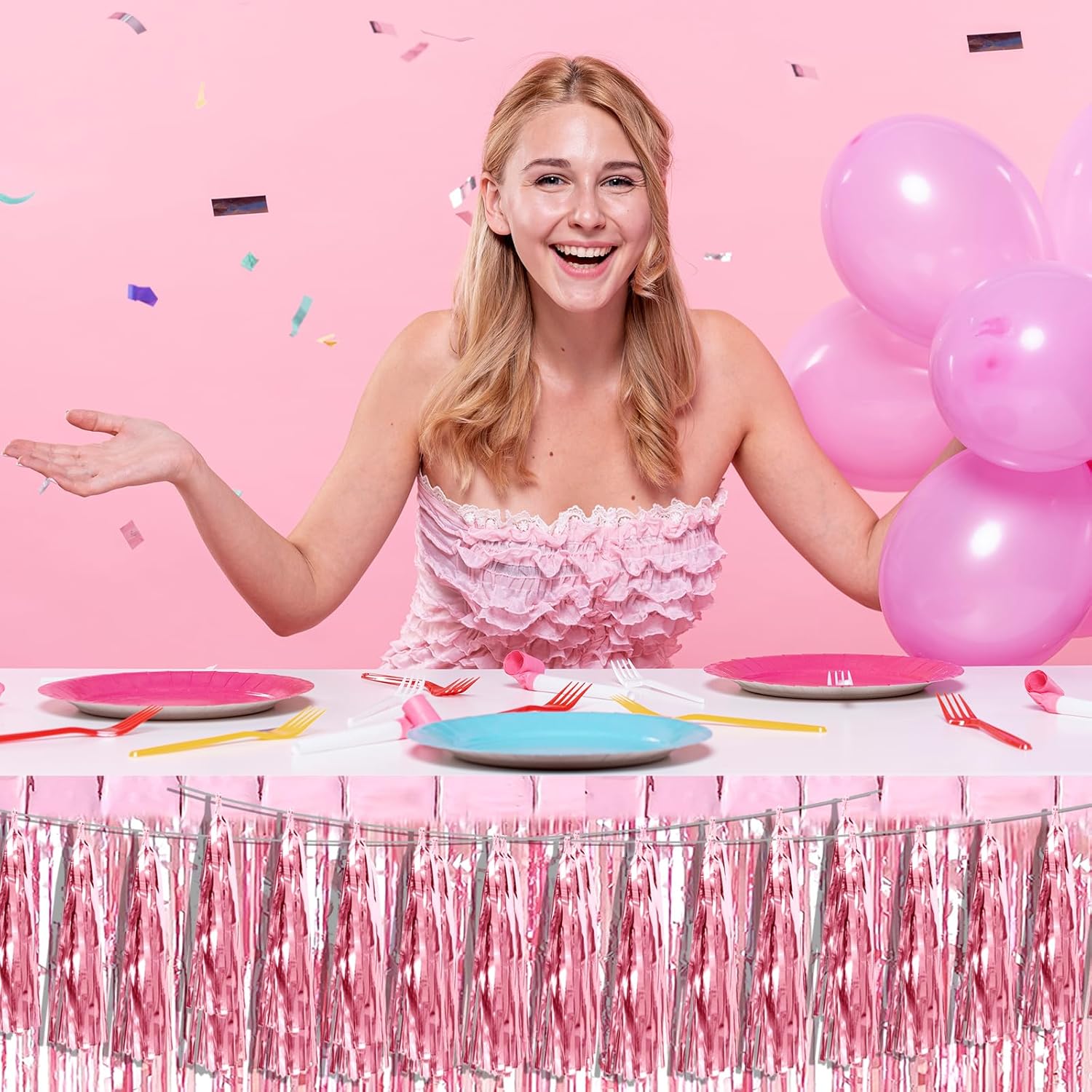 3P Light Pink Foil Fringe Metallic Tassel Streamers Banner Tassel Garland for Parade Floats, Bachelorette, Wedding, Birthday, Halloween, Christmas, Bridal/Baby Shower Party Decorations
