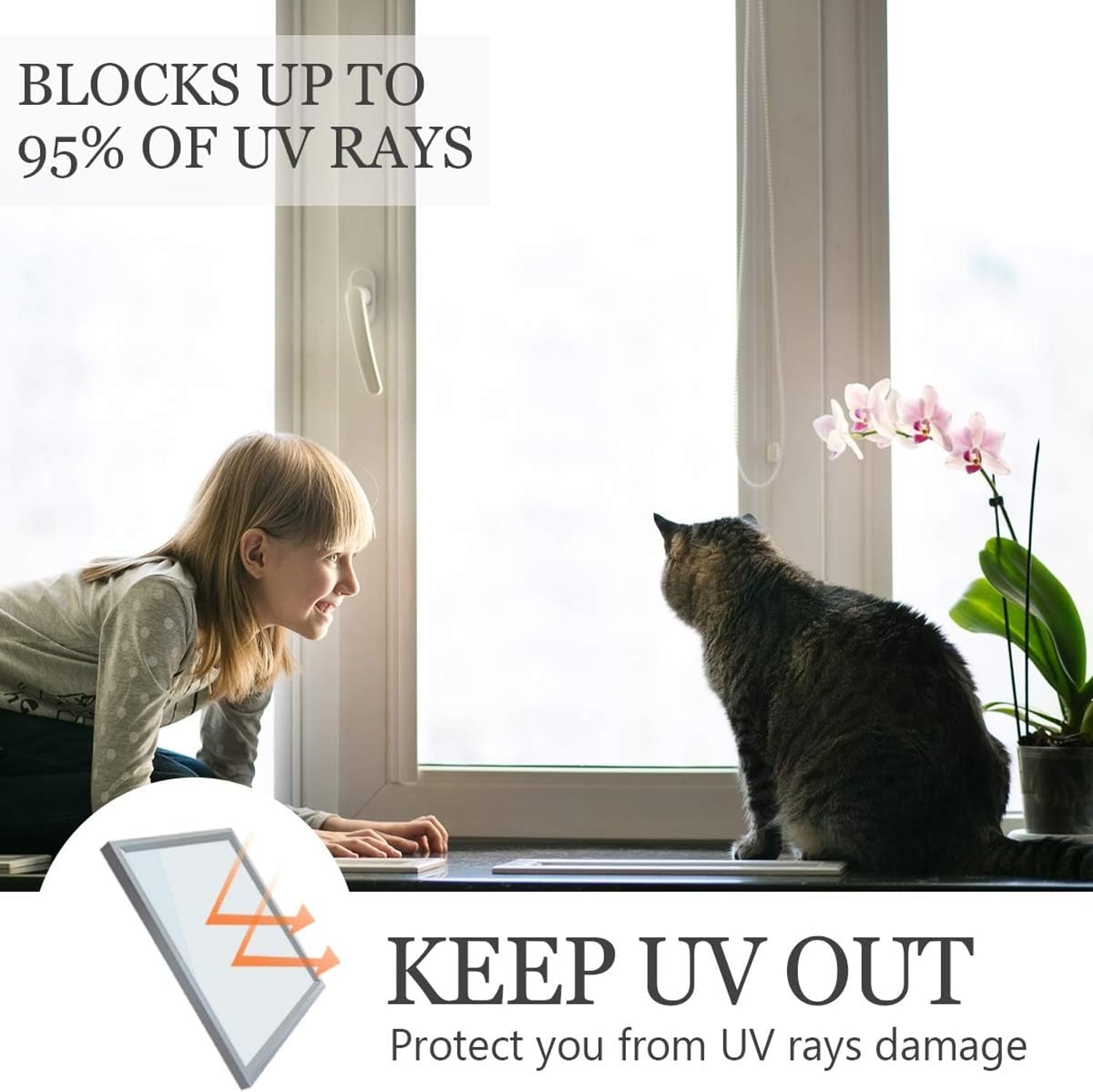 - ANTI UV & HEAT INSULATION: This sun blocking window film blocks out 86% infrared ray and 90% UV ray, there is no more strong dazzling glare, can reduce fading and aging of furniture, also protect our skin. Heat insulation in the summer and heat preservation in the winter to save energy and reduce expensive heating and cooling costs.