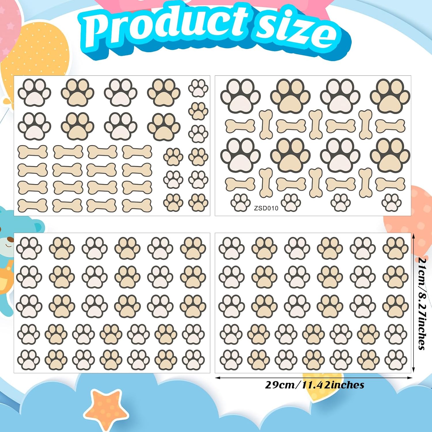 - Package Includes: you will get 127 pieces of animal footprint decals with 2 patterns, including dog paws and dog bones, 4 sheets in total, which have enough quantity to meet your room decorative requirements; The patterns are different in sizes, creating beautiful and lovely scenery in kids' bedrooms