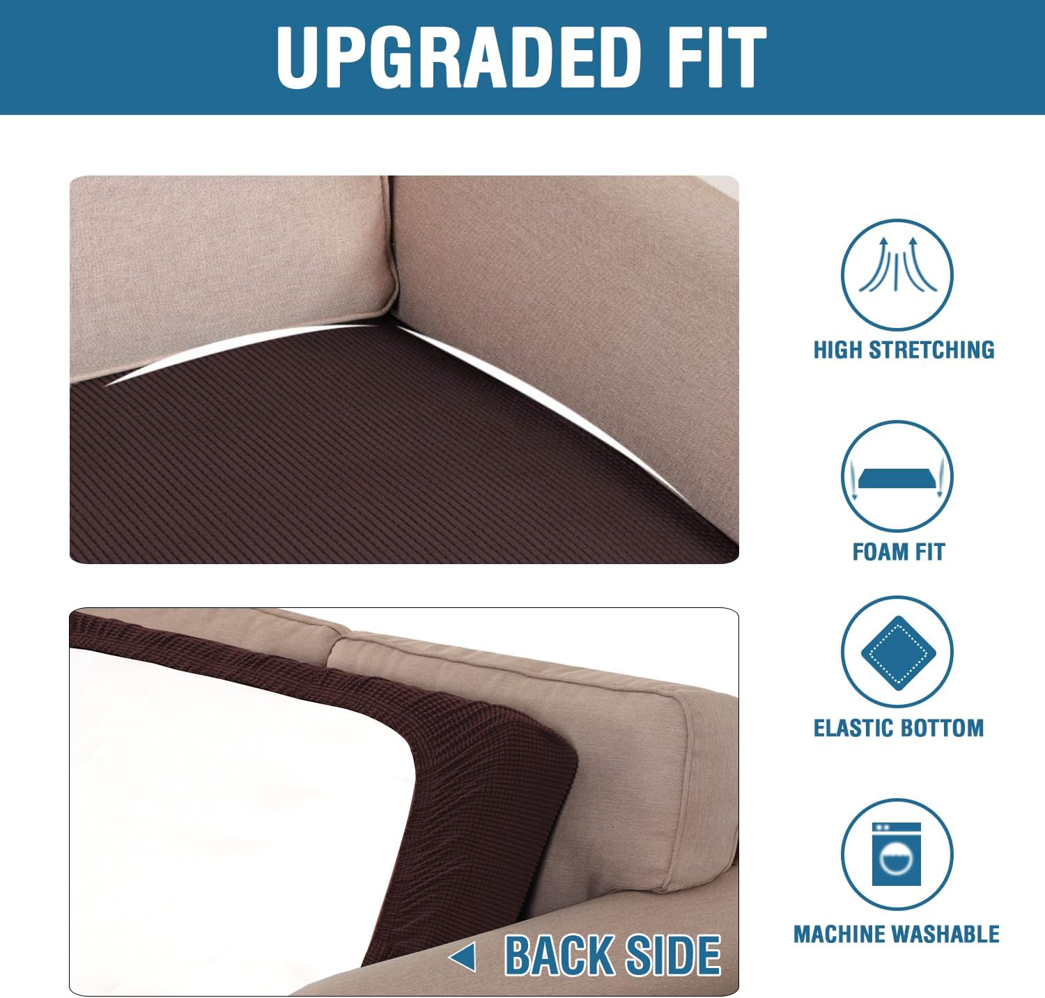 H.VERSAILTEX Super Stretch Individual Seat Cushion Covers Sofa Covers Couch Cushion Covers Slipcover Sets Thick Jacquard Textured Twill Fabric (1 Piece Loveseat Cushion Cover, Chocolate)