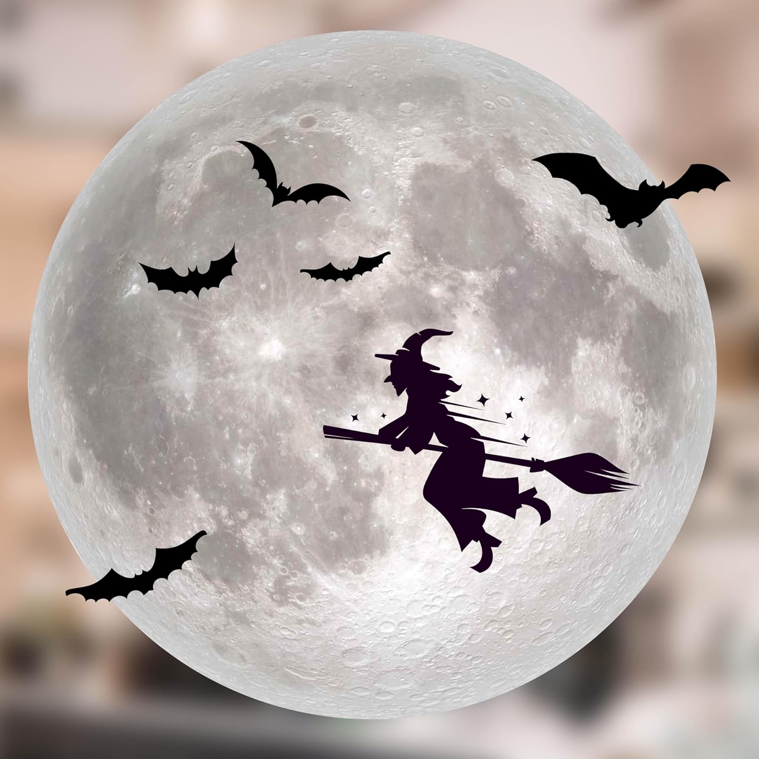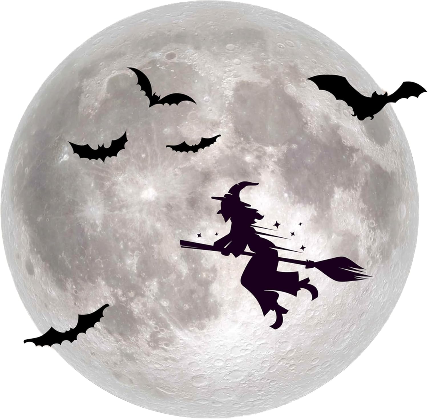 Halloween Window Clings for Glass Windows - 16" x 16" Moon Window Decal - Witch Clings Silhouette - Halloween Decorations