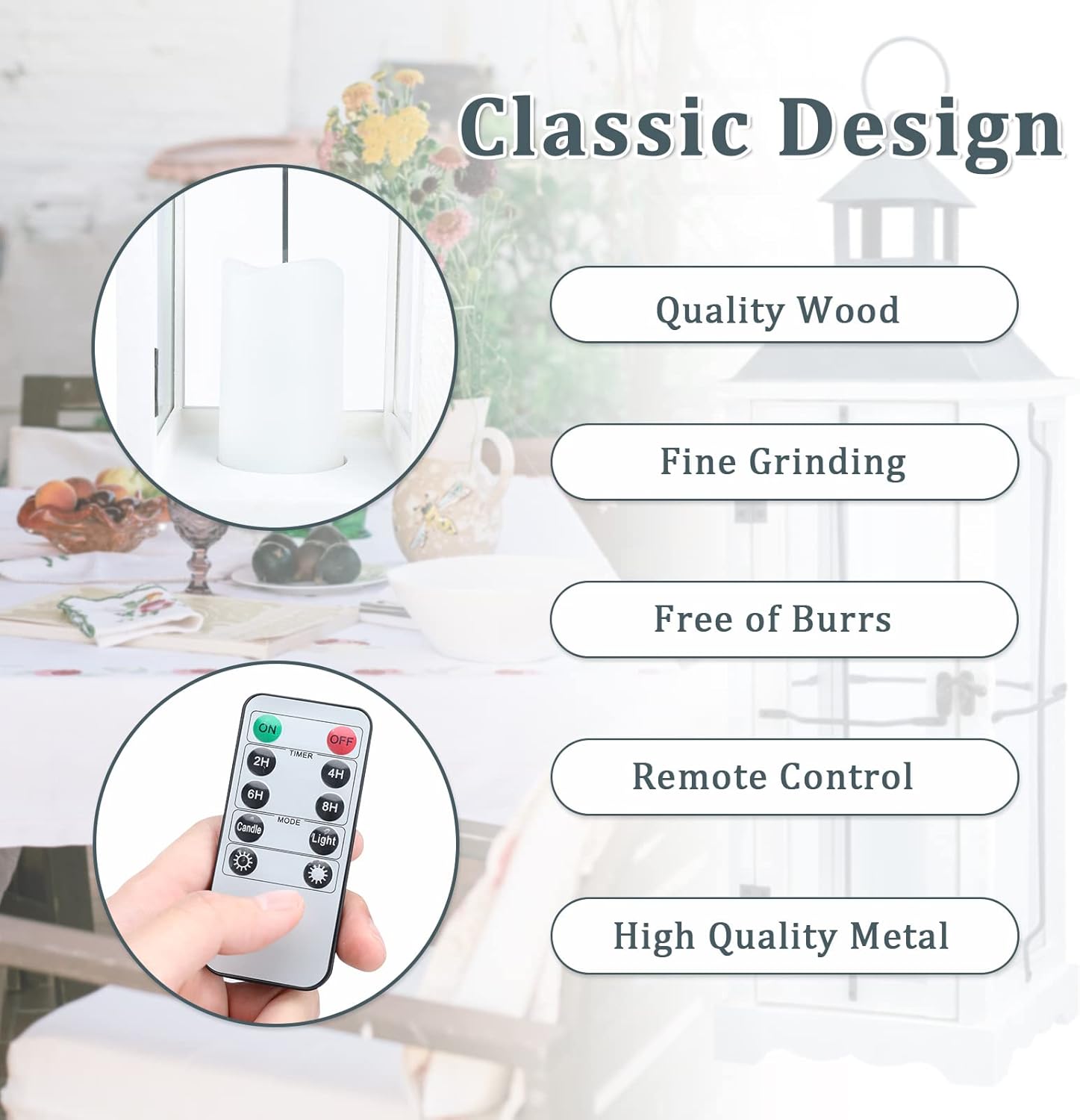 - Vintage Design: The white lanterns decorative with four-sided clear glass panes, metal top and wood frame, combined with white and gold into a retro vintage color, creates an old-world charm and adds a gorgeous and elegant aesthetic. This adds to the classic beauty and creates an elegant look that can be used flawlessly year after year