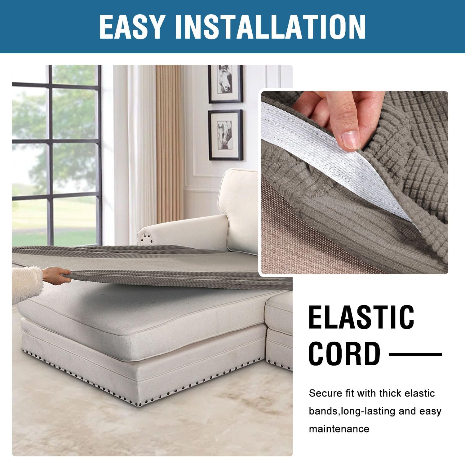 - GREAT FIT: Set of 1. This innovated cushion slipcover is crafted from durable and soft high stretch knitted jacquard fabric. Chaise Lounge Cover for Both Left/Right L Shaped Couch(fits up to 33-37 inch width, 55-61 inch depth, 3-8 inch thickness). Feature one-size-fits-most, kindly measure before ordering