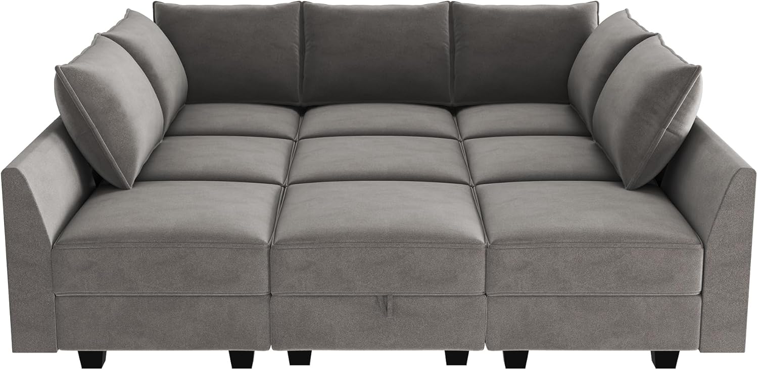 - Easy to transport and assemble: The sectional sleeper sofa consists of 10 boxes that can be passed through narrow doors and upstairs. You can easily install the sofa by following the instructions. Overall Size (D x W x H): 81.5 x 87 x 33.9 inches, Storage dimensions of each seat (D x W x H): 20.50 x 20.50 x 6.00 inches, Weight Capacity: 2970 lbs