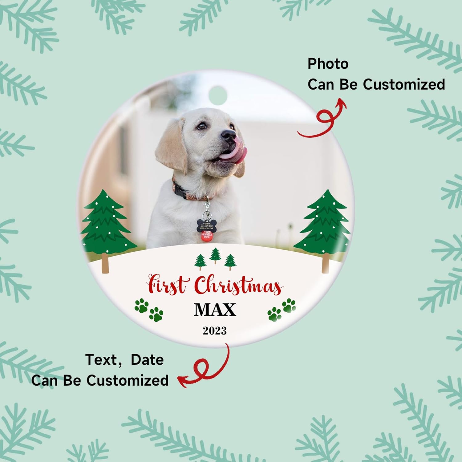 • 【Personalized Pet First Christmas Ornaments】 Custom pet first Christmas ornament can help you keep the treasured memories with your puppy cat, Please record those invaluable moment with your fur friends. Celebrate you pet baby first Christmas with this cute hanging ornament