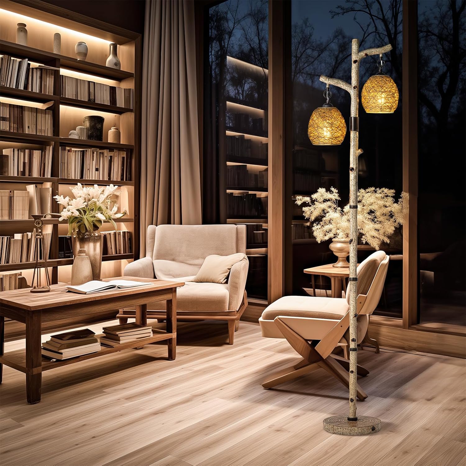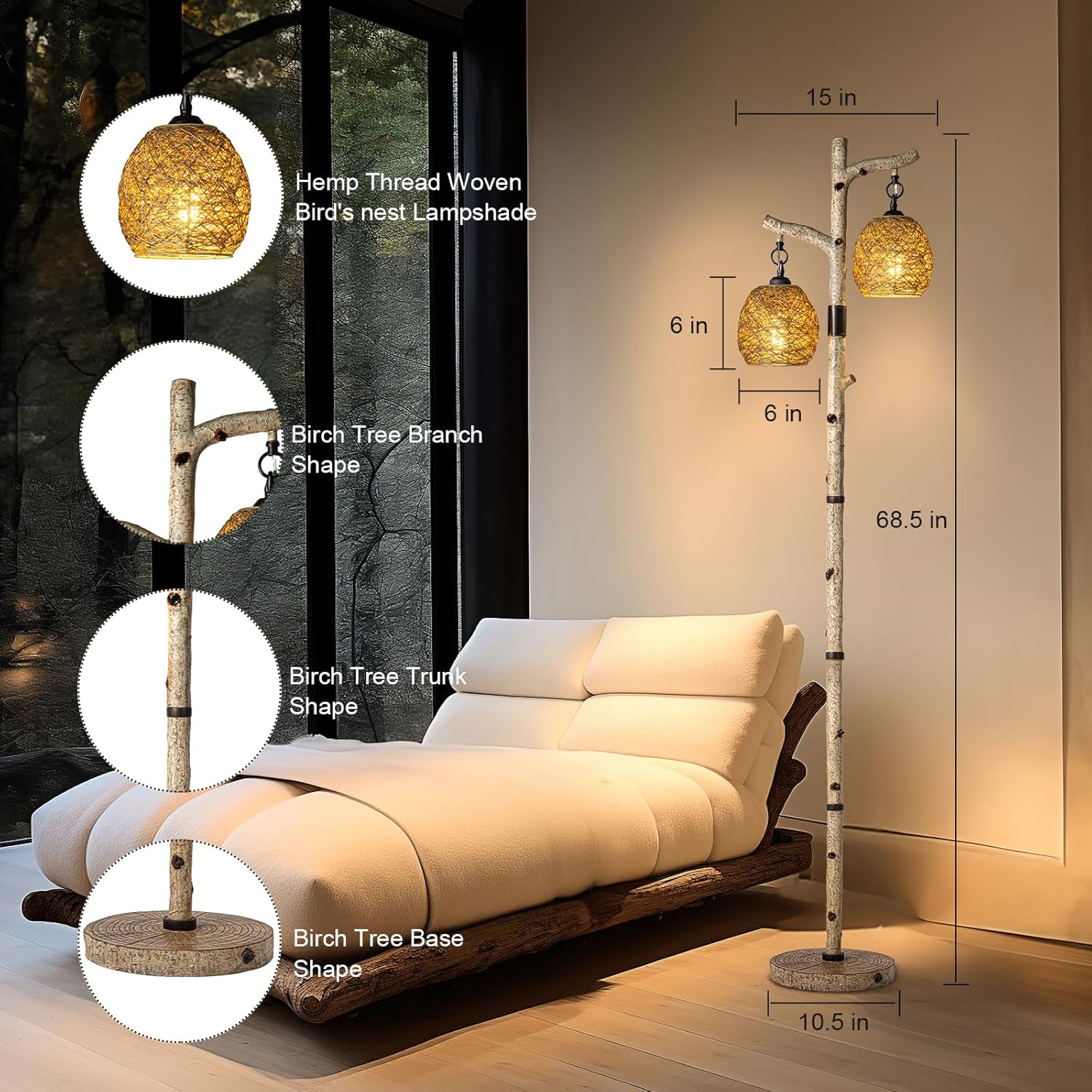 • Farmhouse floor lamp: This vertical lamp has a natural trunk design with a thick base and a beautiful reproduction of the birch tree appearance. The cute and delicate bird's nest lantern shade gives this tree floor lamp an elegant style. Perfectly decorate your bedroom, living room, villa, bar, hotel, farmhouse...