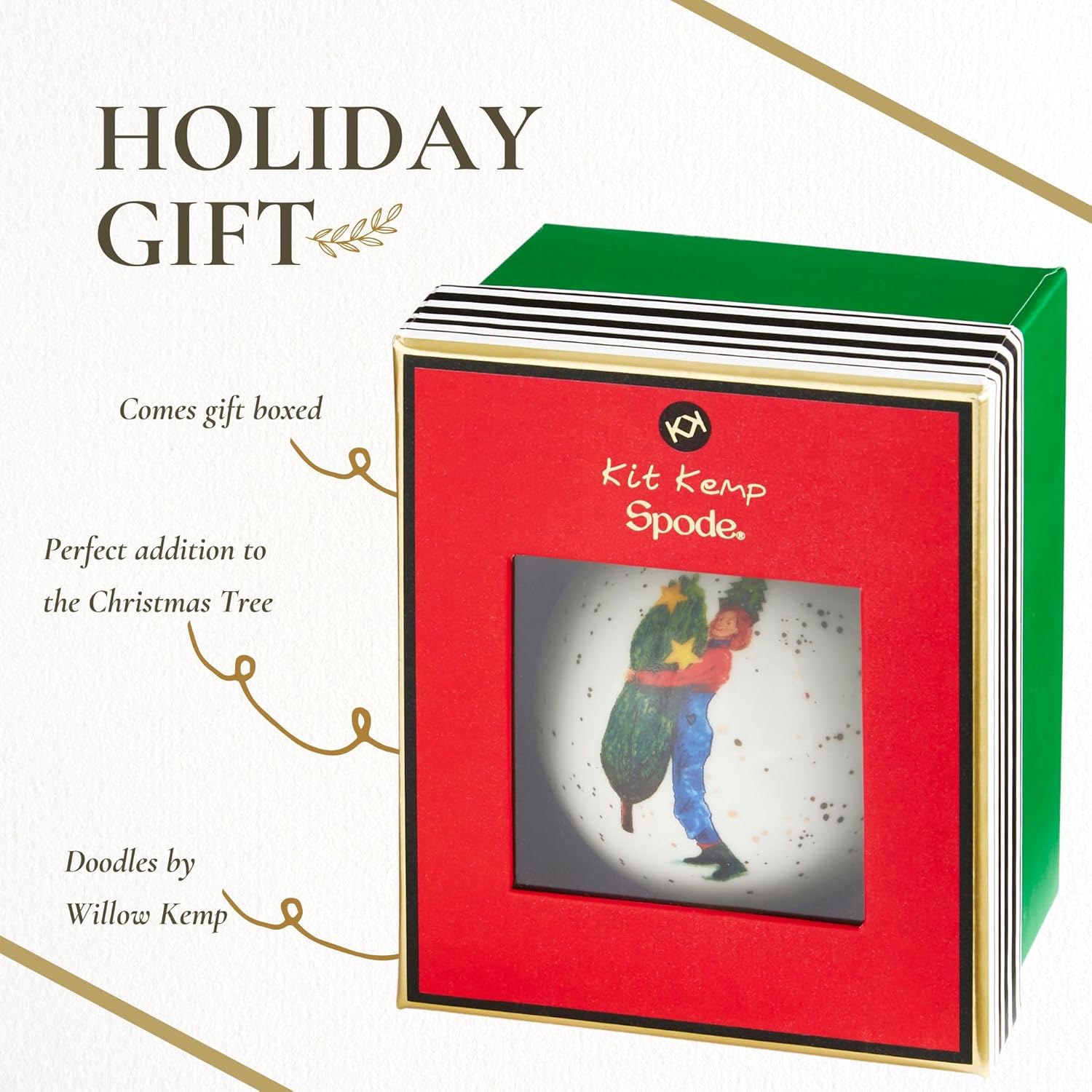 Spode Kit Kemp Christmas Ornament - Doodles Branch Manager - Fine China Whimsical Festive Keepsake, Collectible Holiday Decoration for Tree & Seasonal Decor - Holiday Ornament for Gift Giving