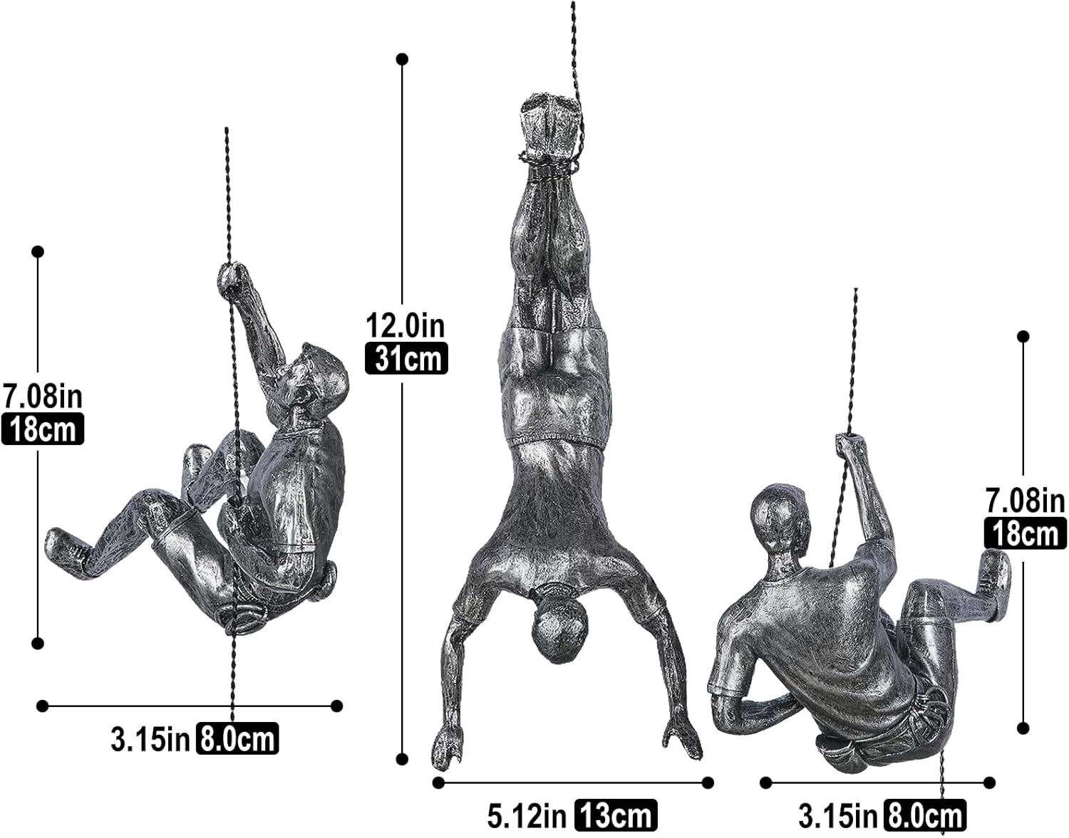 Large Set of 3 Climbing Men Wall Art Decor Sculpture,Nordic Modern Simplicity Decorative Wall Art, Climbing Man Sculptures,Home & Office Climber Gifts