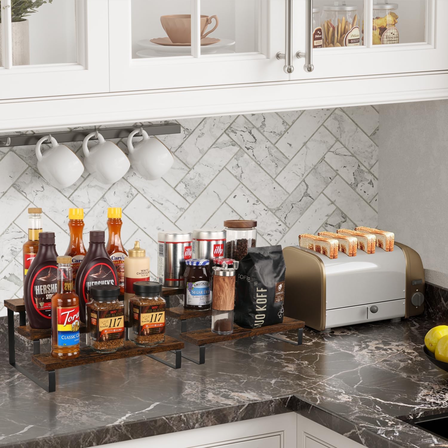 YINMIT Wooden Display Riser Stand, Tiered Perfume and Cologne Organizer Stand, 3 Tier Spice Rack Organizer, Rustic Display Shelf for Candles (3 Tier, 2 Pack)