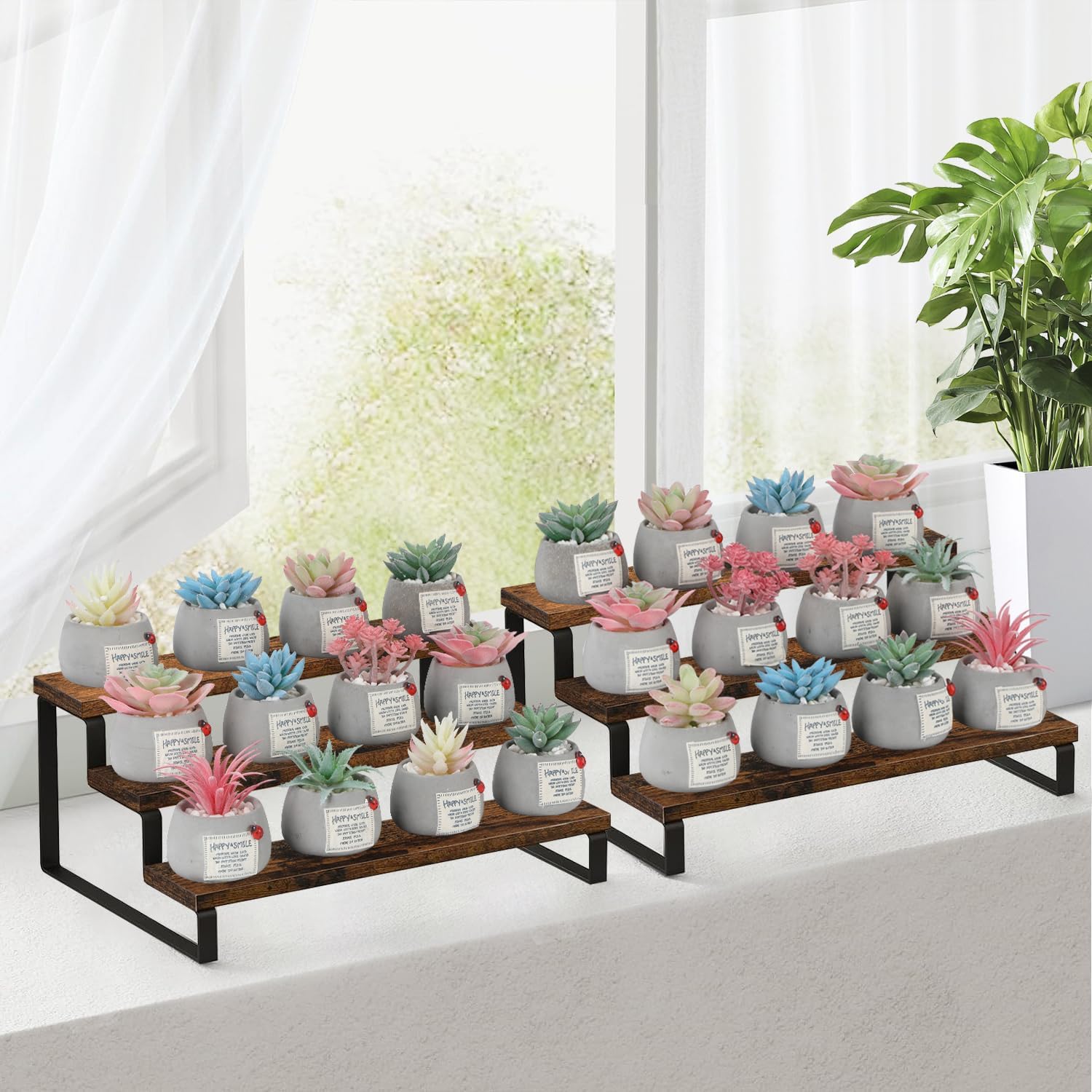 • Convenient Design: The stepped design makes efficient use of your counter space. This wooden display riser is a great idea for displaying toy figurines in cabinets, celebrating party desserts, and cosmetics on the dresser. The raised tiers help to create an eye-catching feature for your items.