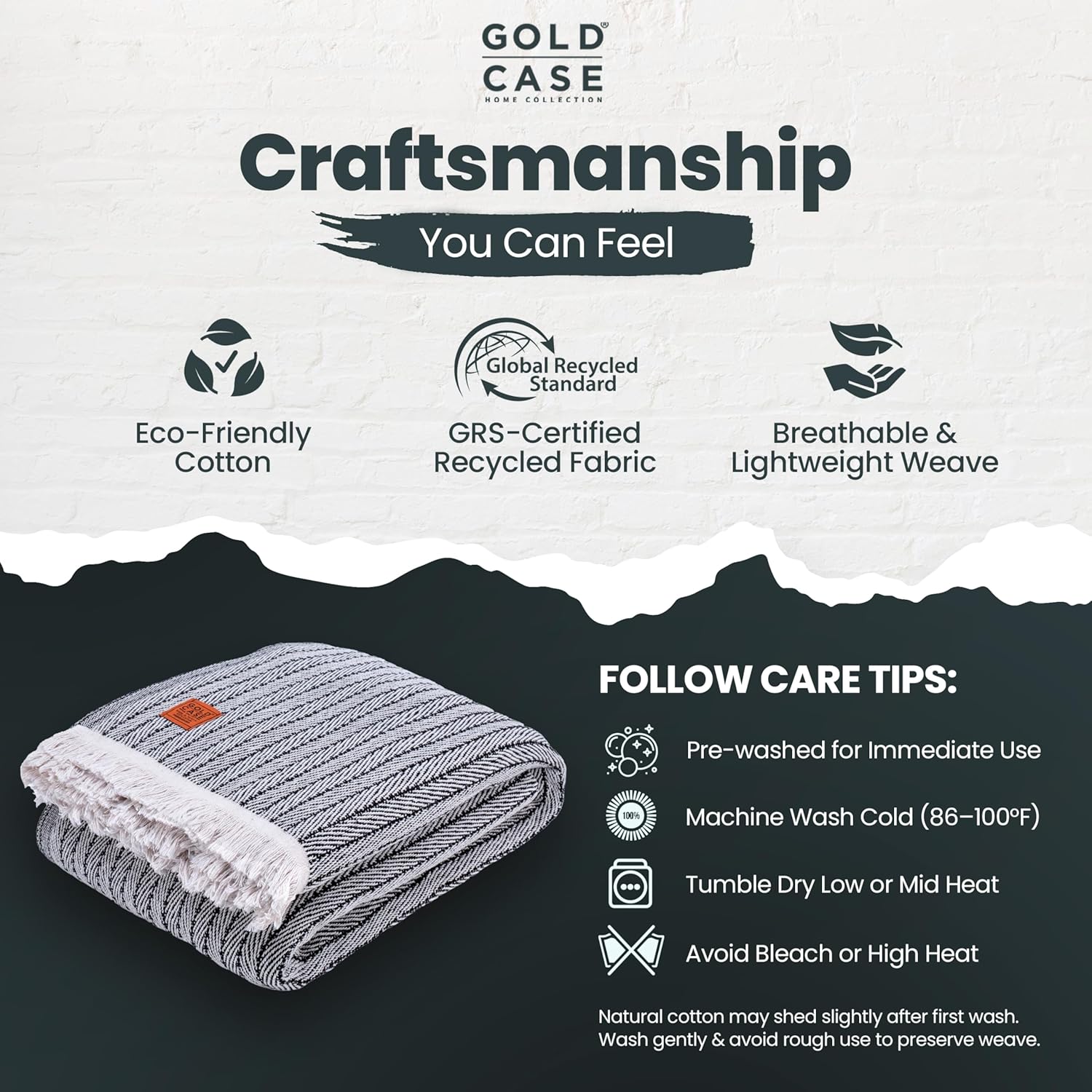 Gold Case Throw Blanket for Bed – 100% Recycled Turkish Cotton Bed Blanket – Decorative Throw Cotton Blankets for Living Room & Bedroom – Vintage Black Woven Queen Blankets – 90x90