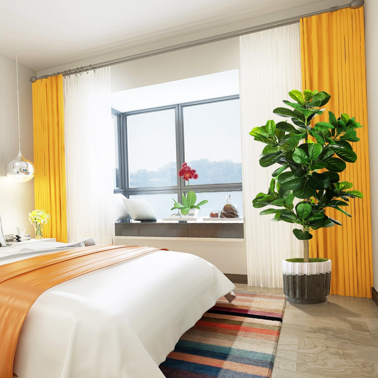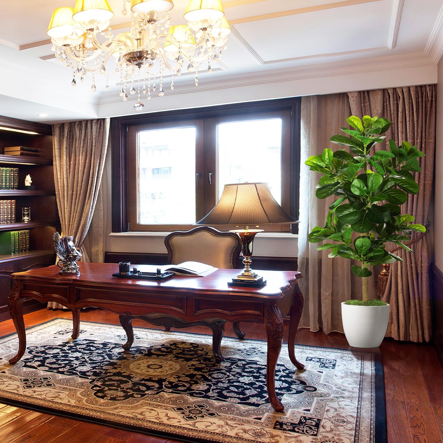• 【BEST DECORATIONS】 Carefully crafted to mimic the appearance of a real-life Fiddle Leaf Fig Tree, looking as close to reality as possible, perfect for any room or office and outdoor decor, this fake fig tree will let you feel the presence of nature. All seasons are green. Perfect housewarming gift.