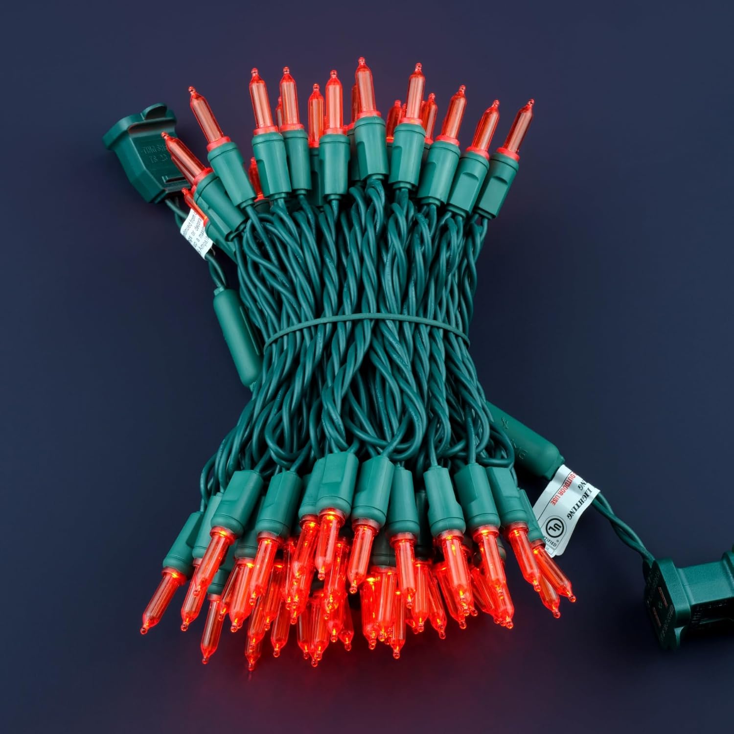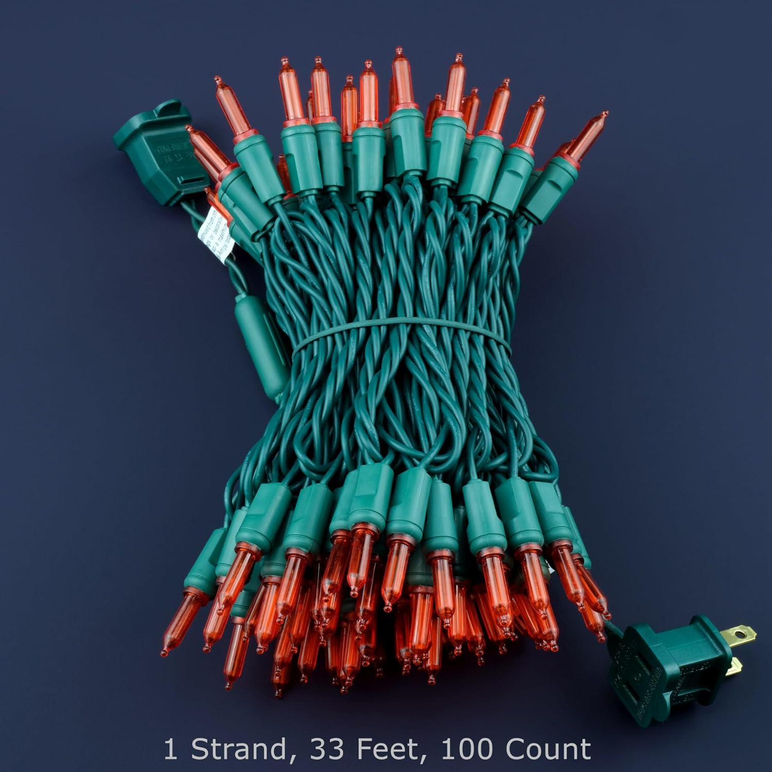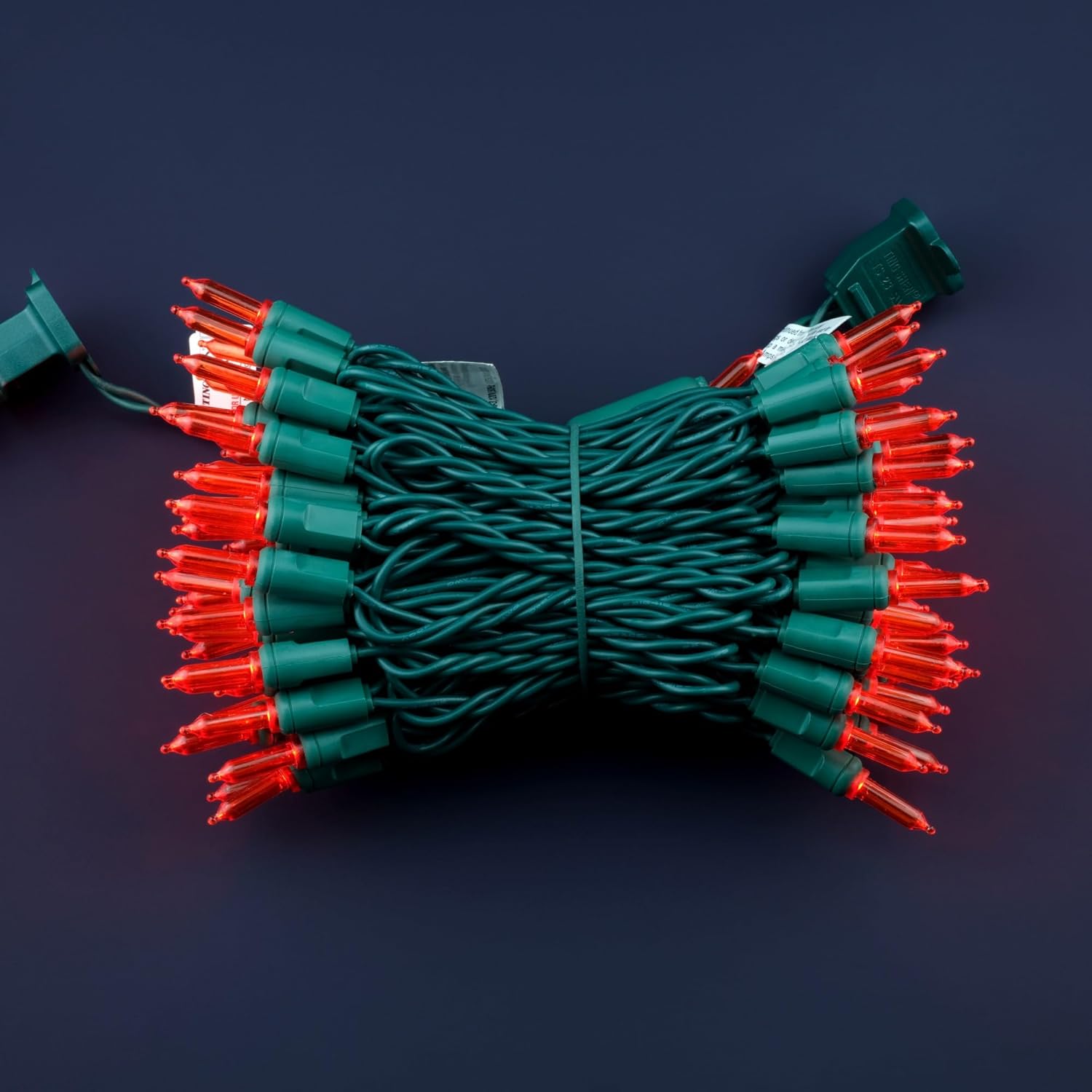 • SPECIFICATIONS β˜€ Each pack contains 1 strands of one-piece string lights, total length 33 feet with 100 count red mini lights. 22 AWG green cord, 4" lead, 4" spacing, 4" tail.