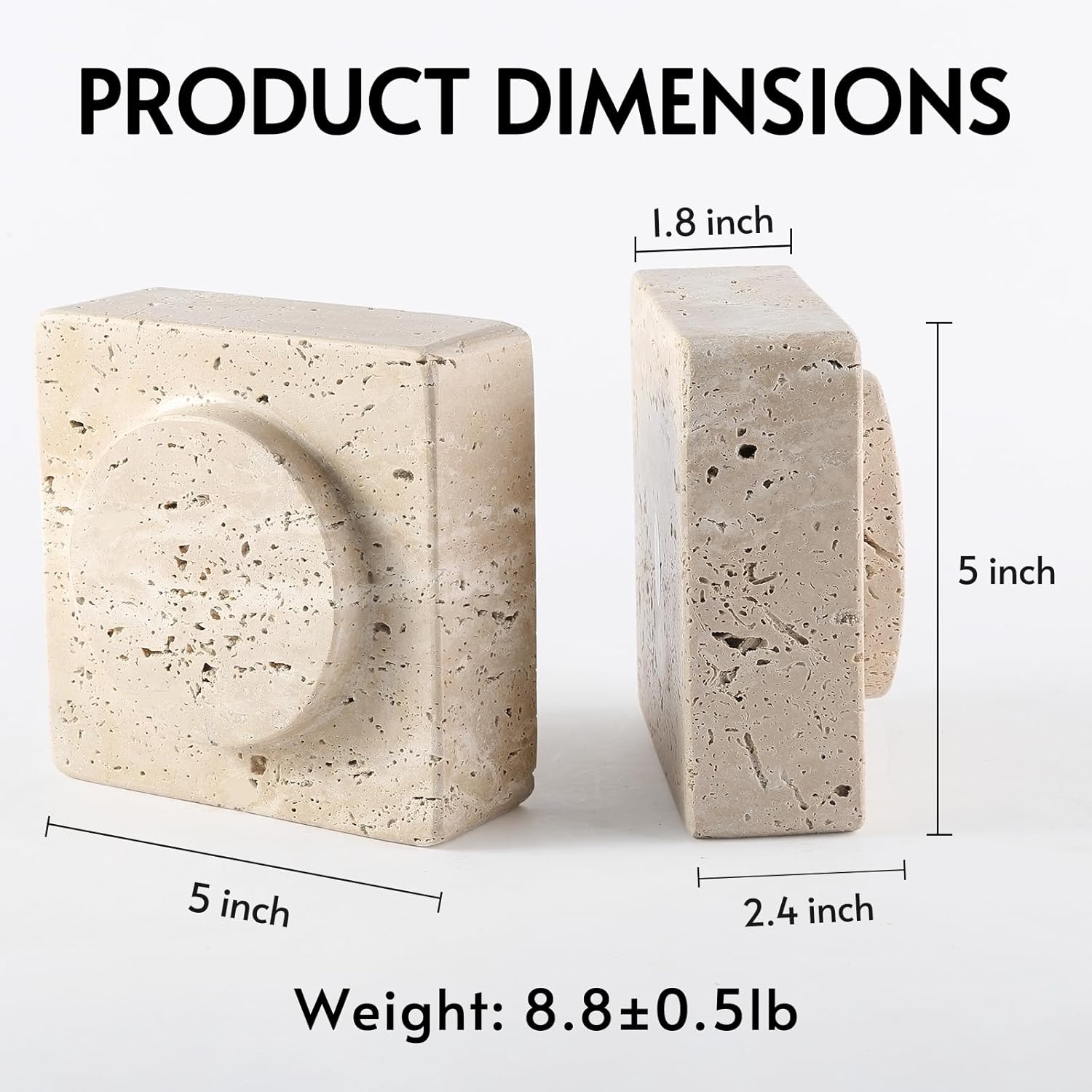 Koville Marble Square Book Ends, Heavy Duty Book Holders, Bookends for Shelves, Office Bookshelf Decor for CDs/Video Games(Travertino Romano)