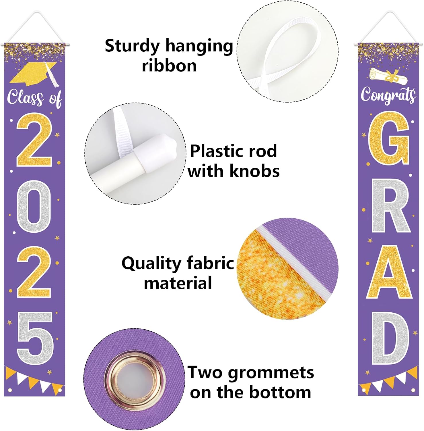 - Highly Quality Material: Graduation banner is made of high quality fabric, easy to use and store, sturdy enough for the long-time use. Weather-resistant, ideal for outdoor or indoor decorations, photography background.