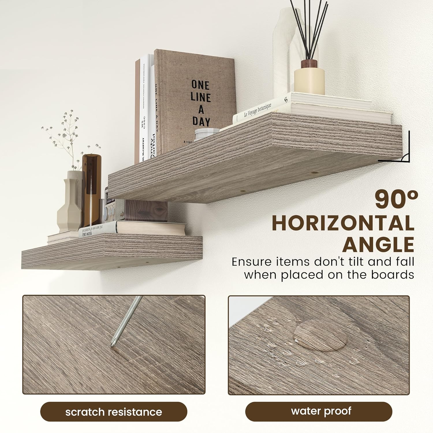 - EASY TO INSTALL - Come with all the installation hardware you need. We have a smart installation design. Thicken metal brackets help boards to be stable and load-bearing, vertical to the wall, and not sagging. The shelves have pre-drilled holes in the bottom to allow screws to secure the boards to the brackets to prevent them from slipping