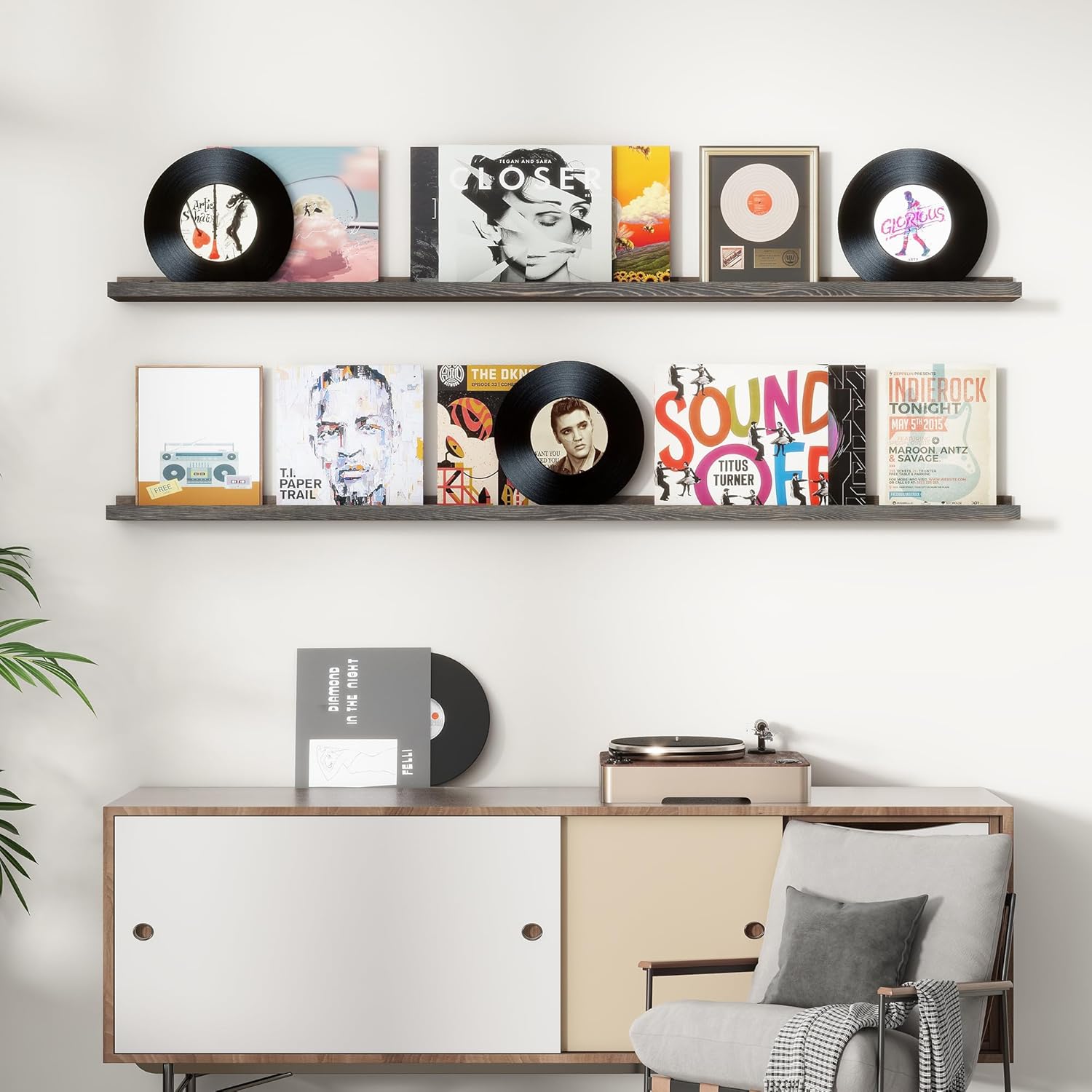 Picture Ledge Shelf, Floating Shelves Set of 2, Solid Pine Wood 72'' Long Large Nursery Book Shelves for Toys Storage, Kids Bookshelf for Living Room Bedroom Decor Books Photo Frames, Grey
