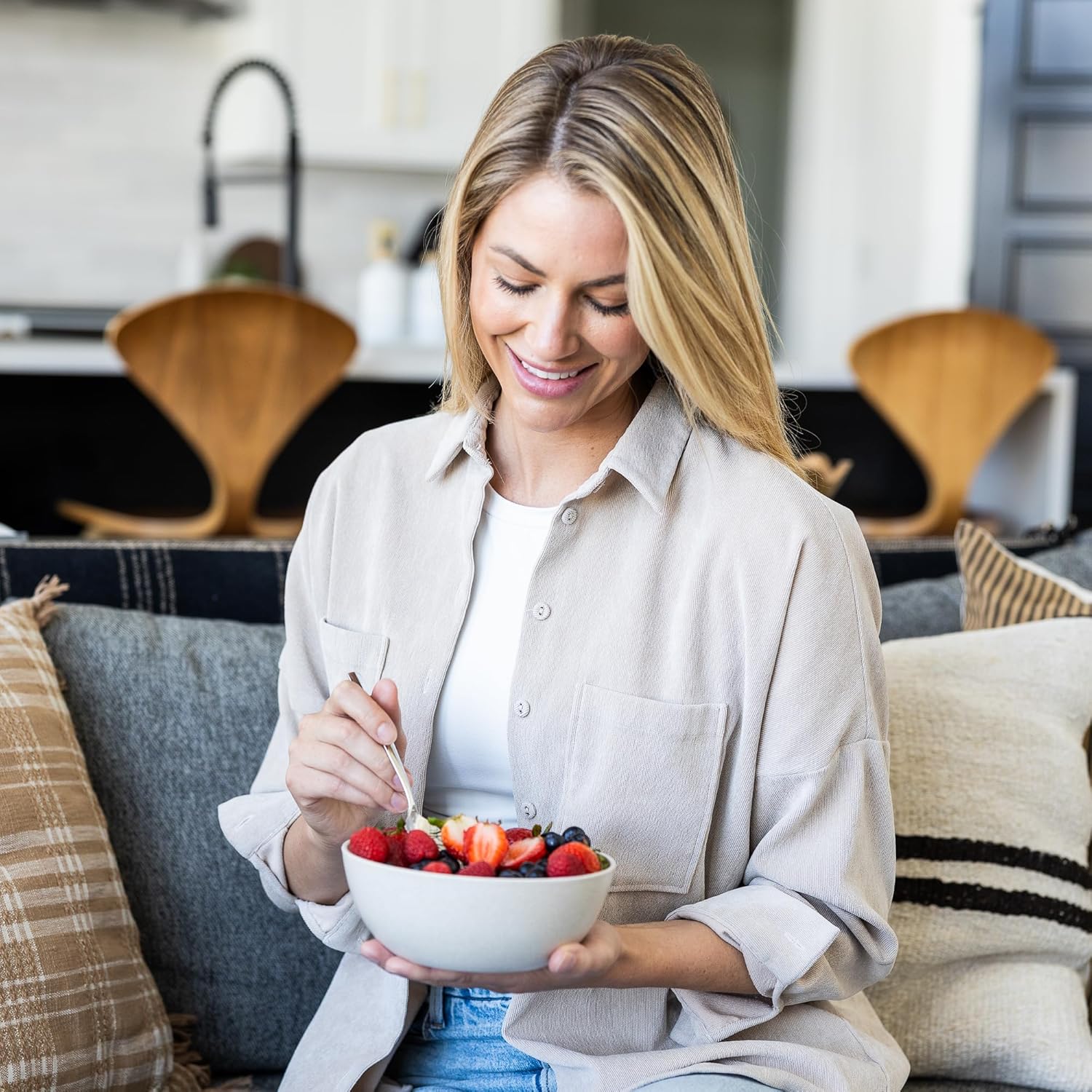 - [ Custom Design with Everyone in Mind ] - Our uniquely designed microwave safe bowls are 34 ounces and perfect for large portions of soup, cereal, oatmeal, salad, ramen, pasta, dessert, ice cream and more. These high-quality cereal bowls look amazing and are perfect for every member of the family.