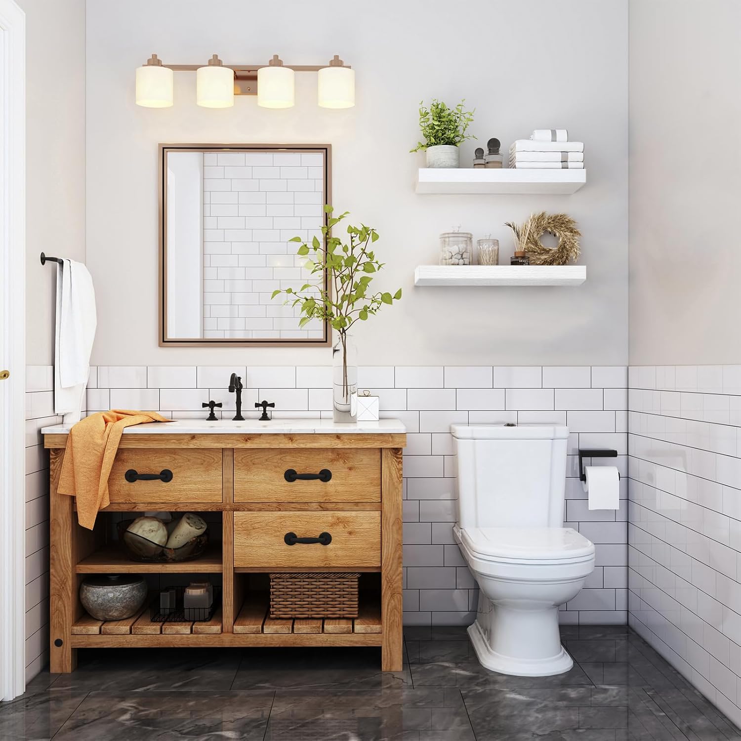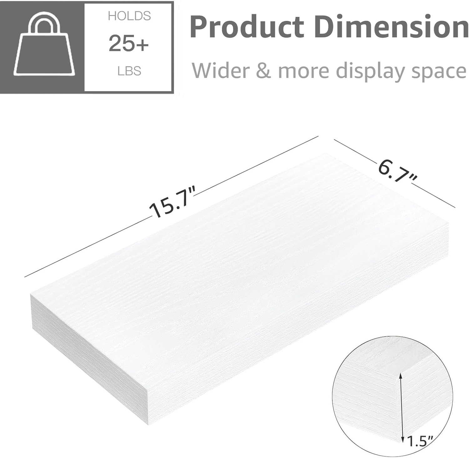 QEEIG Floating Shelves for Wall Bathroom Shelf Bedroom Kitchen Living Room Farmhouse Small Book Shelf 16 inch Set of 2, White (015-W2)