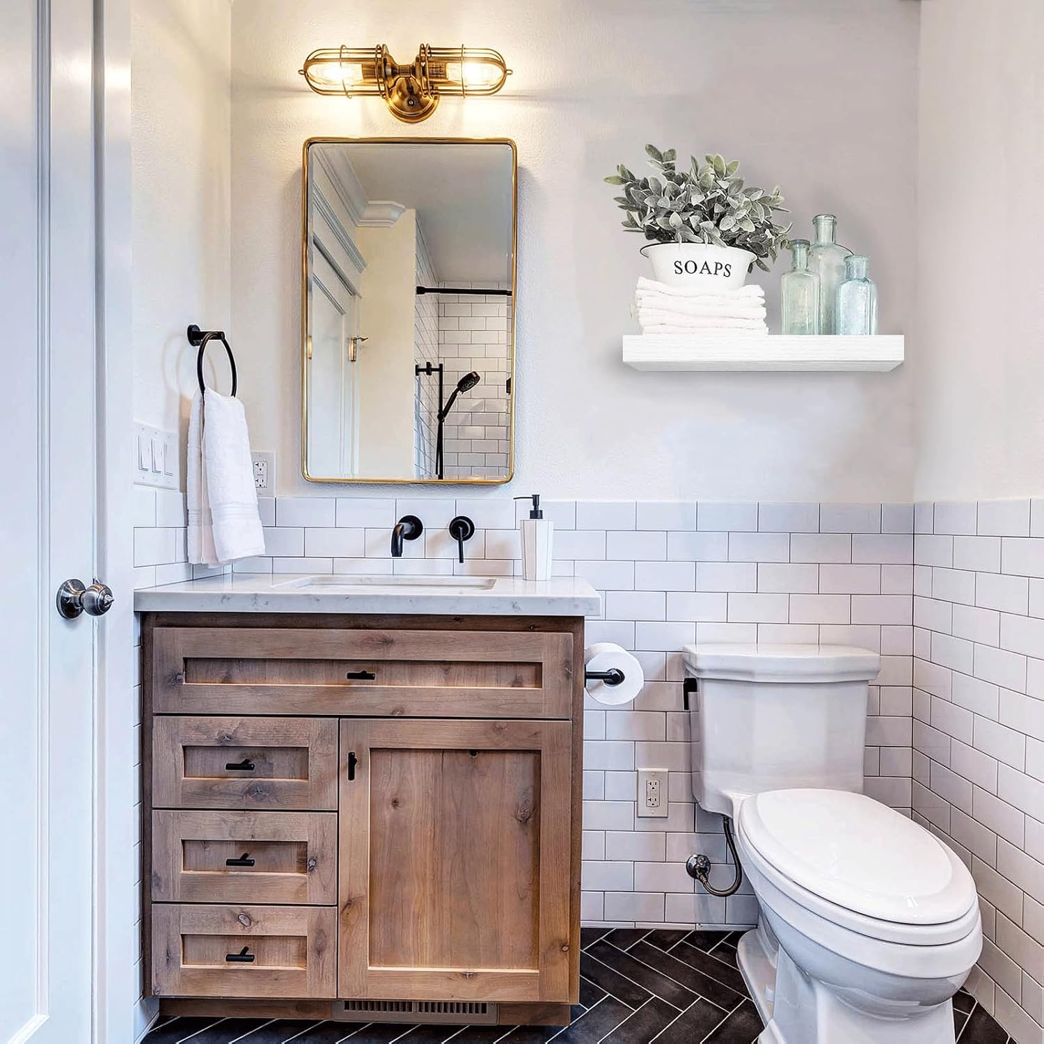 QEEIG Floating Shelf for Wall Bathroom Shelves Bedroom Kitchen Living Room Farmhouse Small Book Shelf 16 inch Set of 1, White (015-W1)