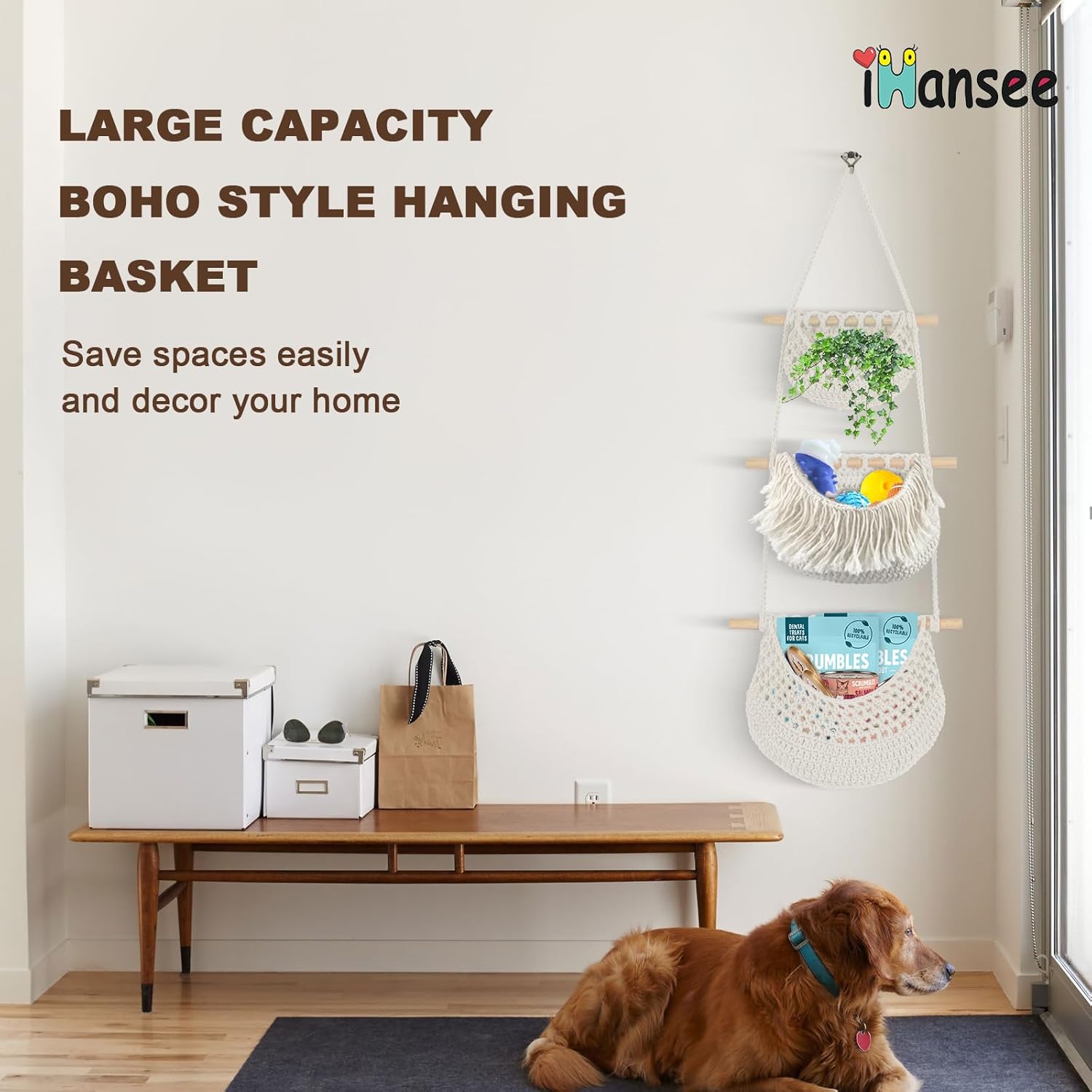 - ăBoho Style Decorative Versatile StorageăBeyond practical kitchen storage, these crocheted over the door storage with macrame in Boho style also serve as stylish rustic decor pieces. You can use it to store produce, fruit, onions, garlic, potatoes in the kitchen, organize scarves, sunglasses and stockings inside the closet, store hair dryer, towels and wash supplies behind the door, or display plant and decorations in living room.